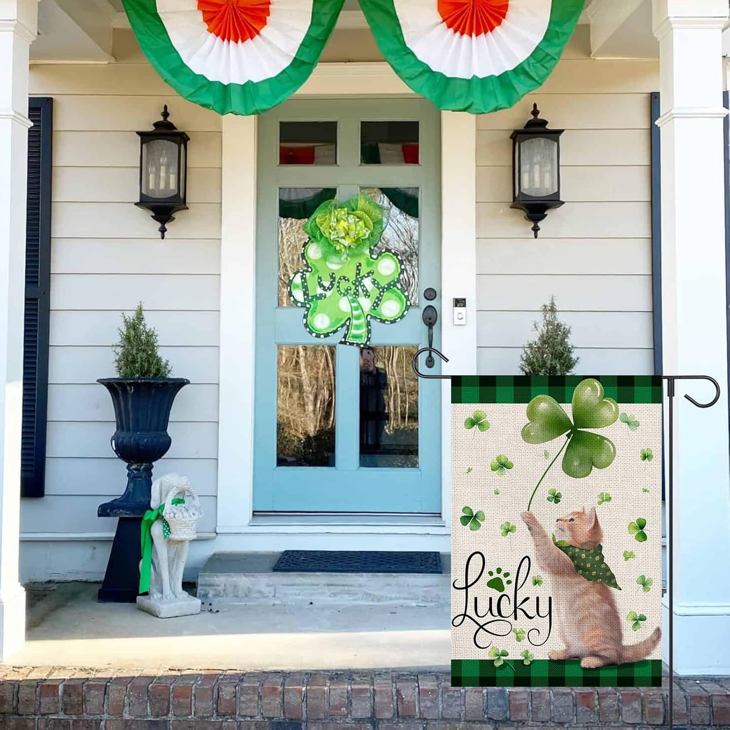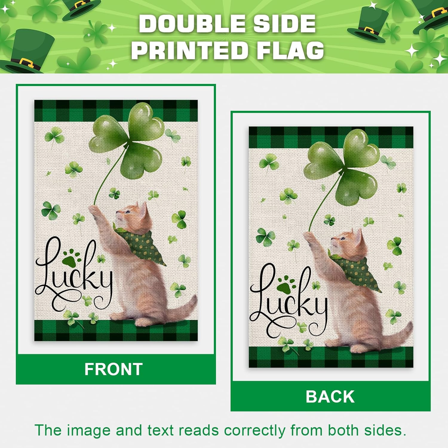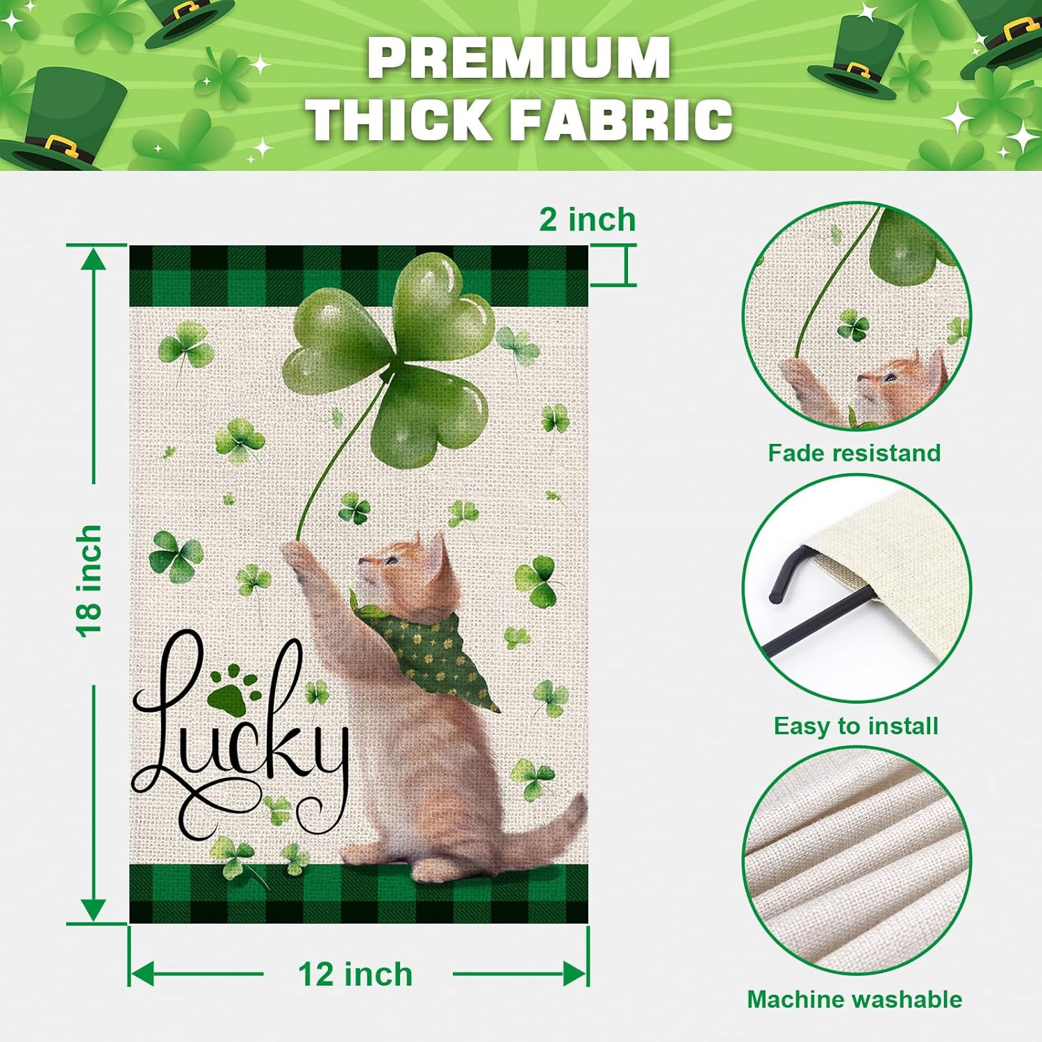 как выглядит St Patricks Day Cat Garden Flag 12X18 Inch Double Sided for outside Small Burlap фото