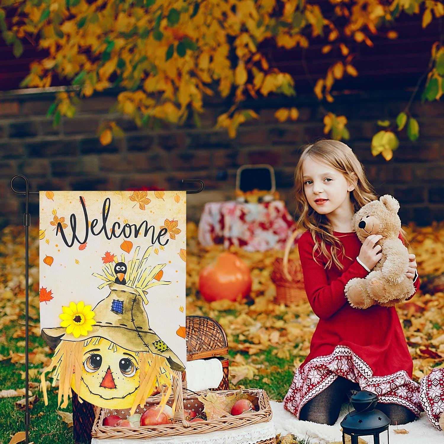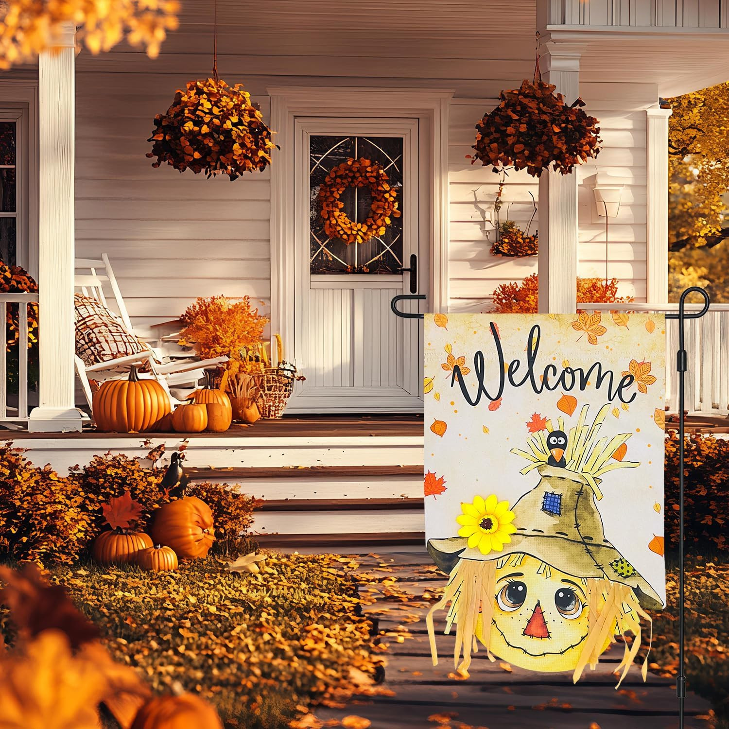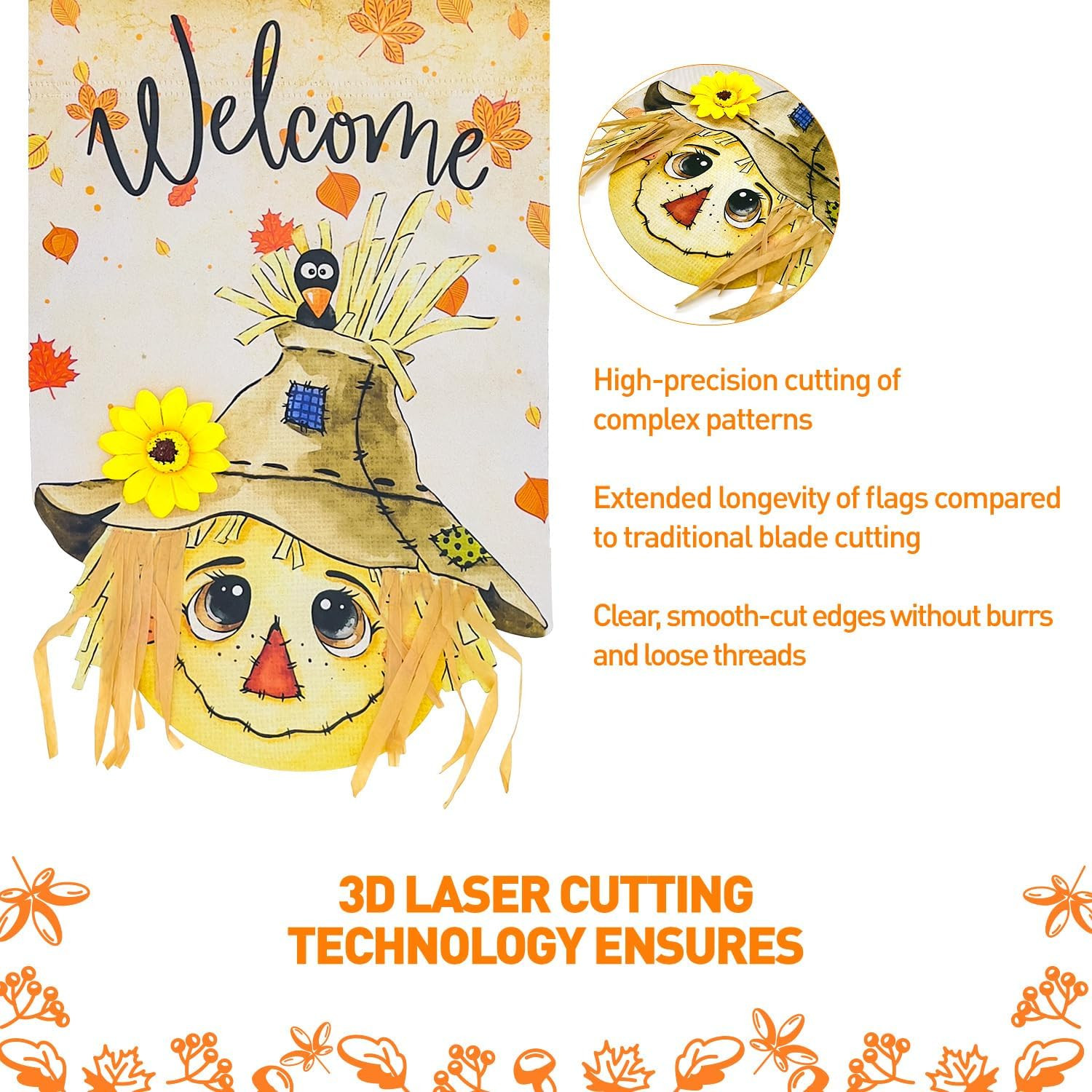 3D Fall Scarecrow Garden Flag 12X18 Inch Double Sided,Welcome outside Small Yard