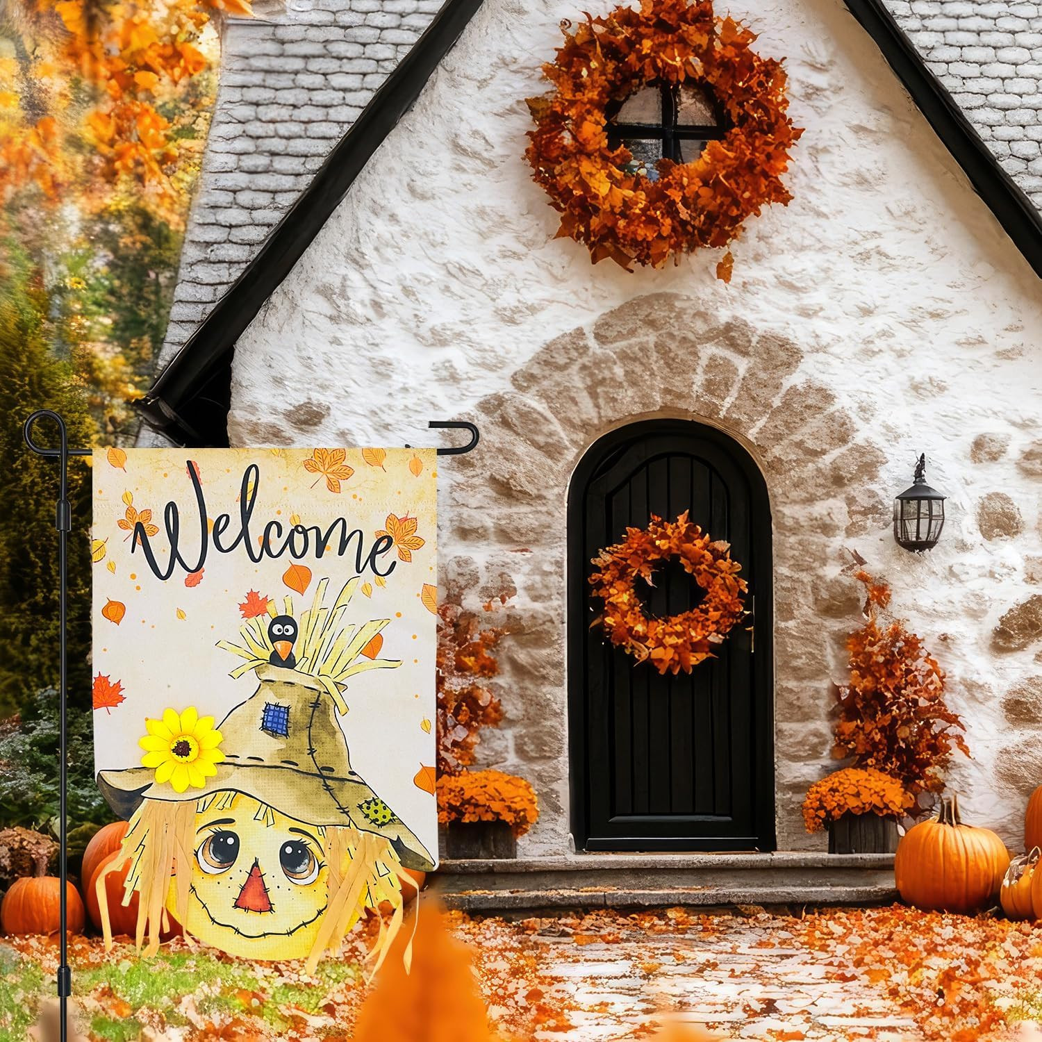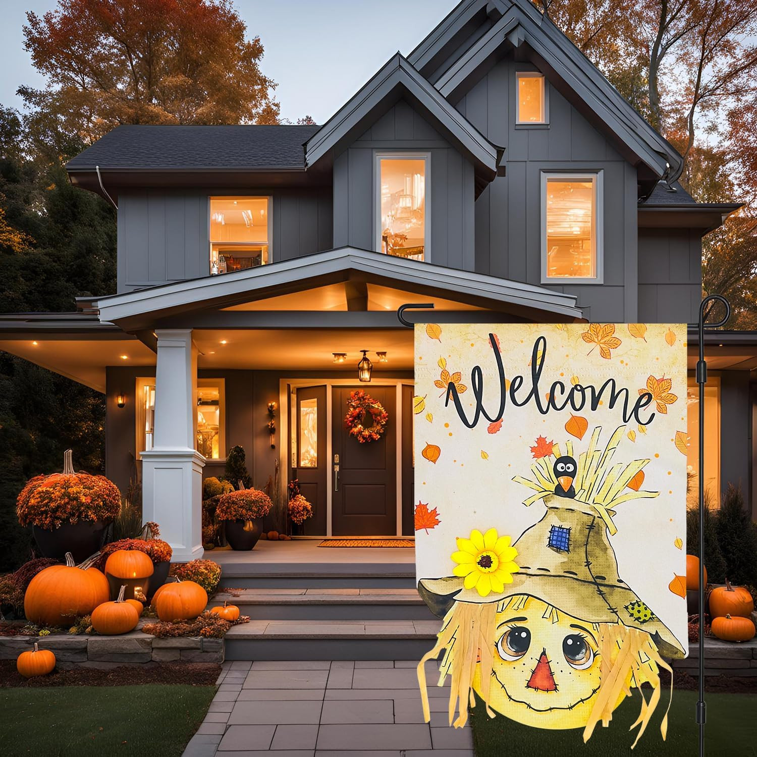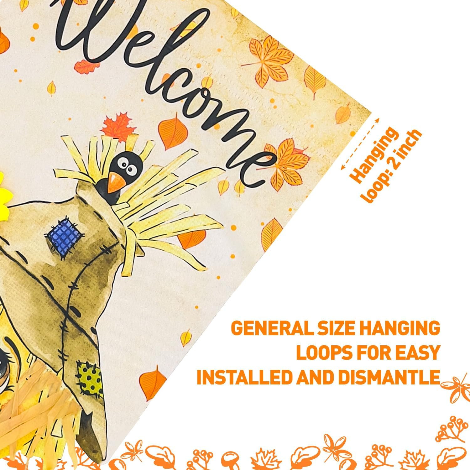 3D Fall Scarecrow Garden Flag 12X18 Inch Double Sided,Welcome outside Small Yard