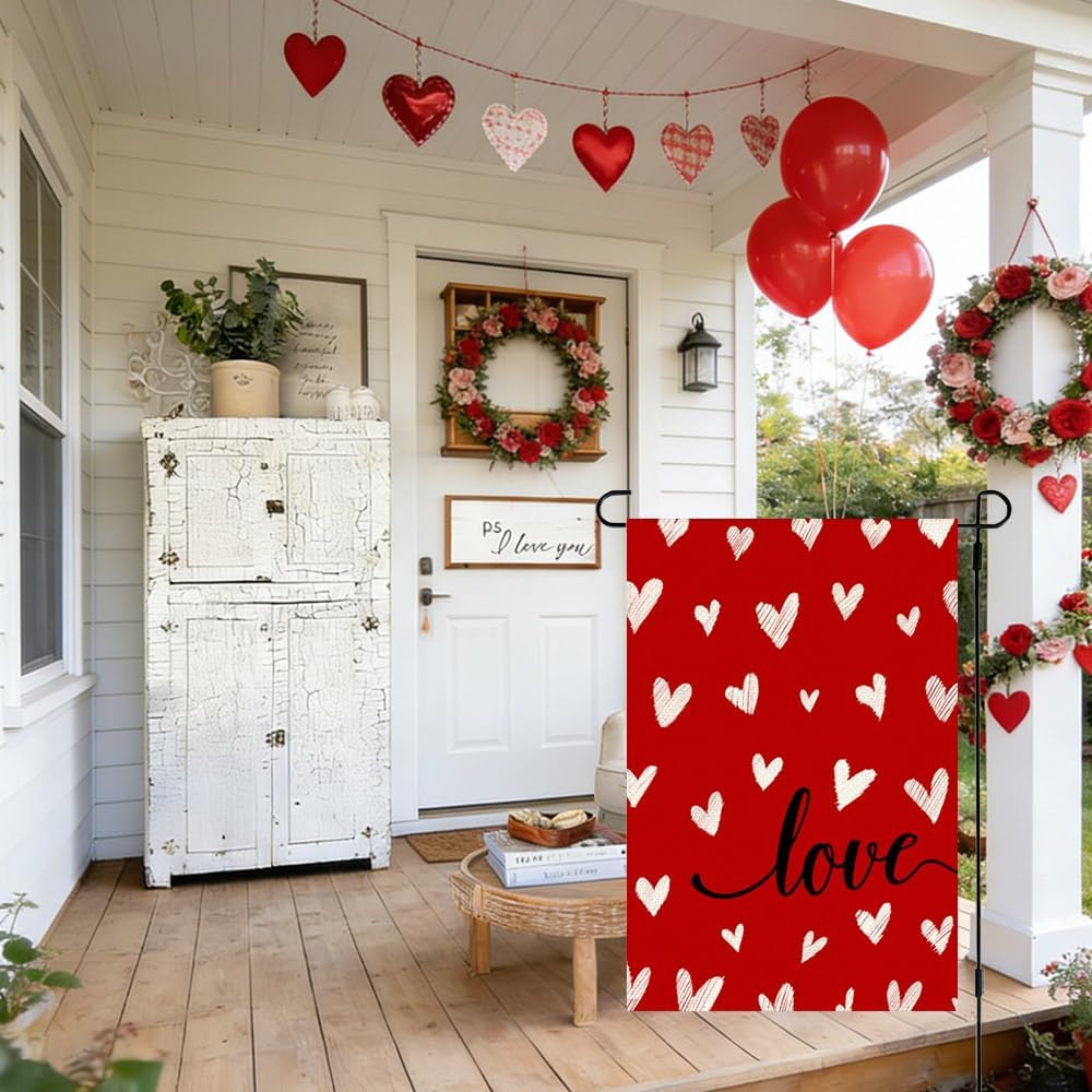 Valentines Day Love Garden Flag 12X18 Inch Double Sided outside Heart Valentine