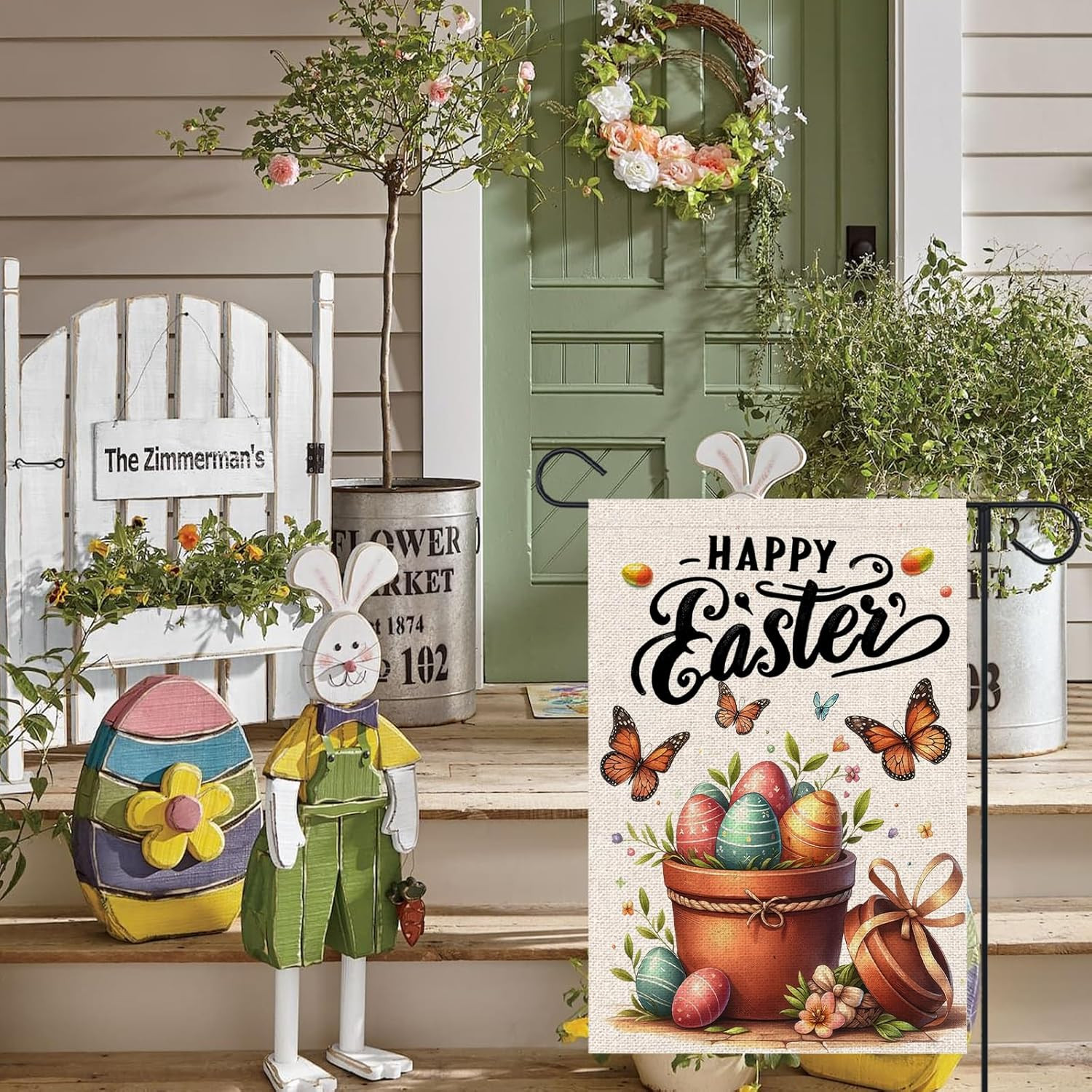 Happy Easter Garden Flag 12X18 Inch Double Sided outside Easter Eggs Butterfly F