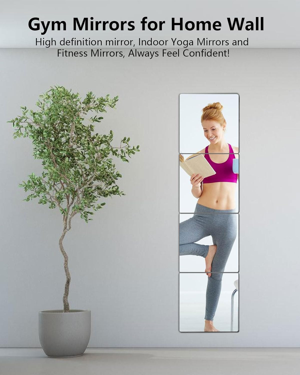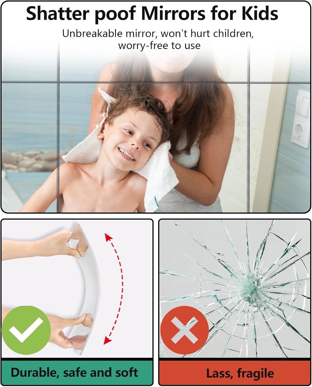 Shatterproof Peel and Stick on Mirror Tiles for Wall Decorative, 4 Pcs 8 X8 Unb