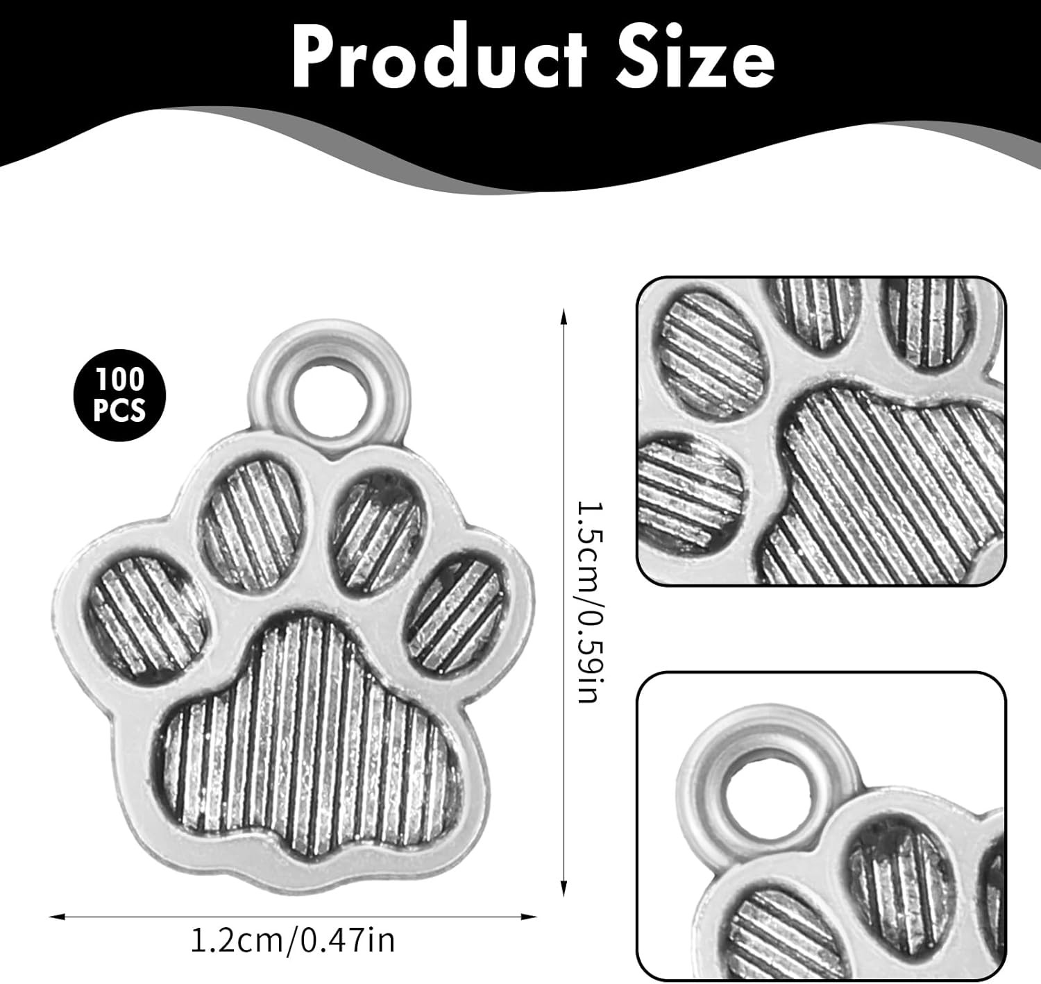 100Pcs Metal Dog Paw Charms for Bracelets Making, 0.47X0.59Inch Pendant for Keyc