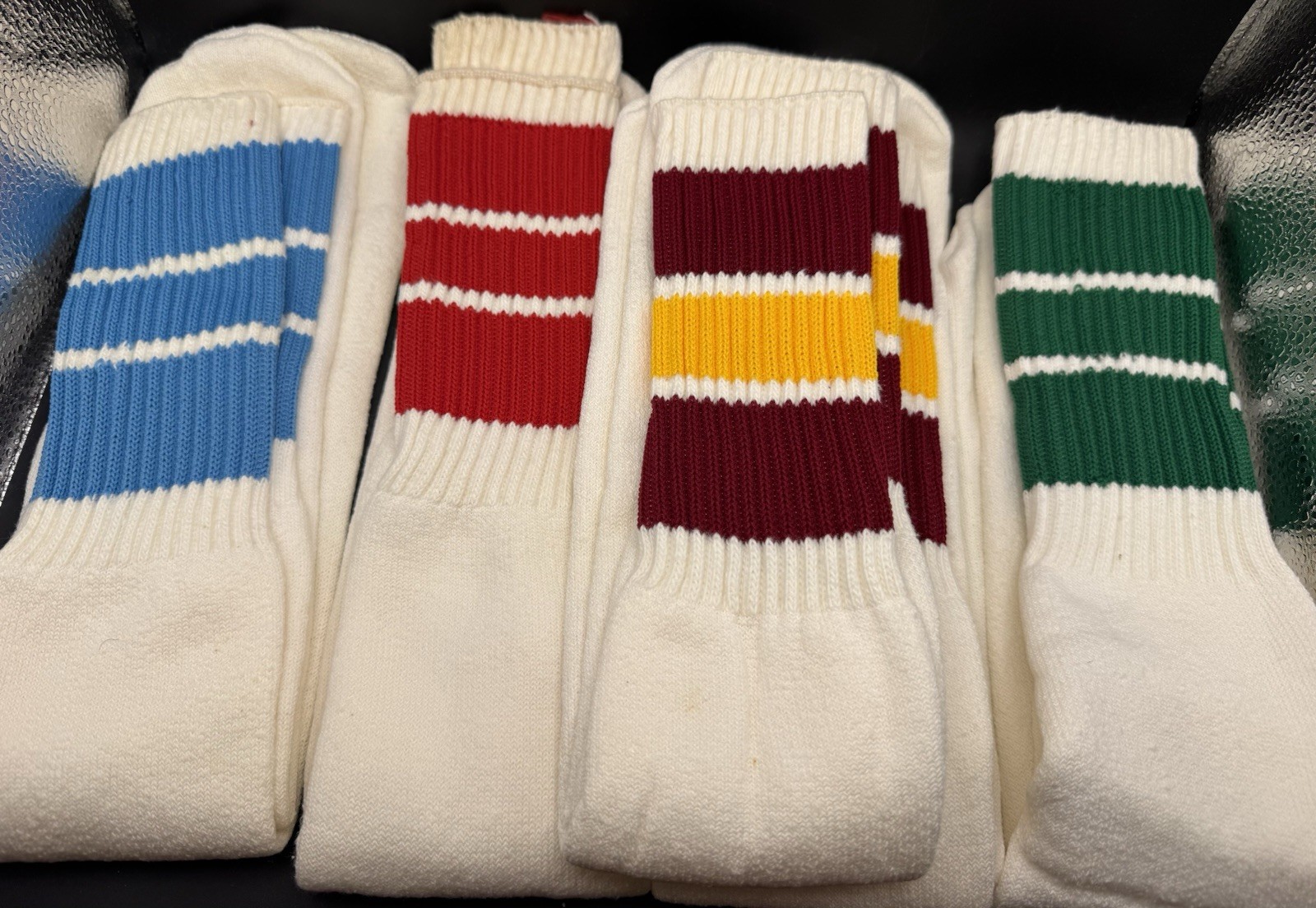 5 Pair Vintage 1980s Tube Socks Multicolor Striped 21in Long