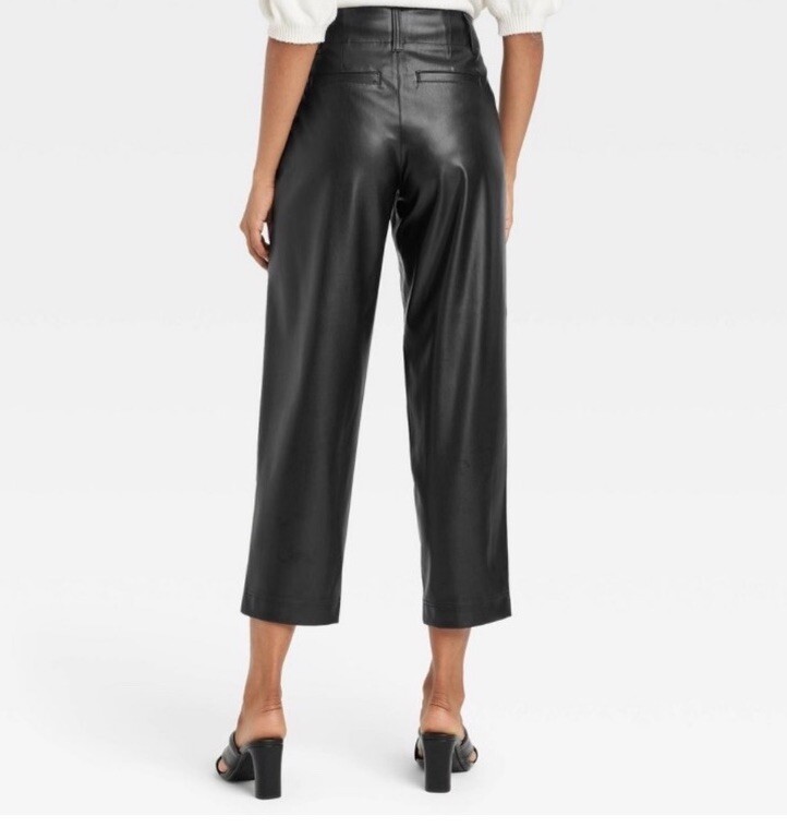 A New Day Faux Leather Ankle Pants Size 6 Black High Rise Pockets NWT