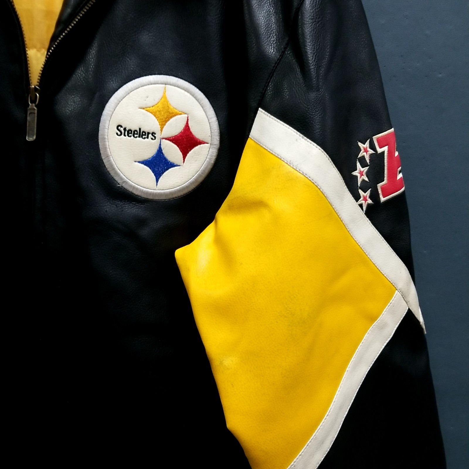 как выглядит NFL Pittsburgh Steelers Leather Full Zip Jacket Sz XL-For Parts Repair фото