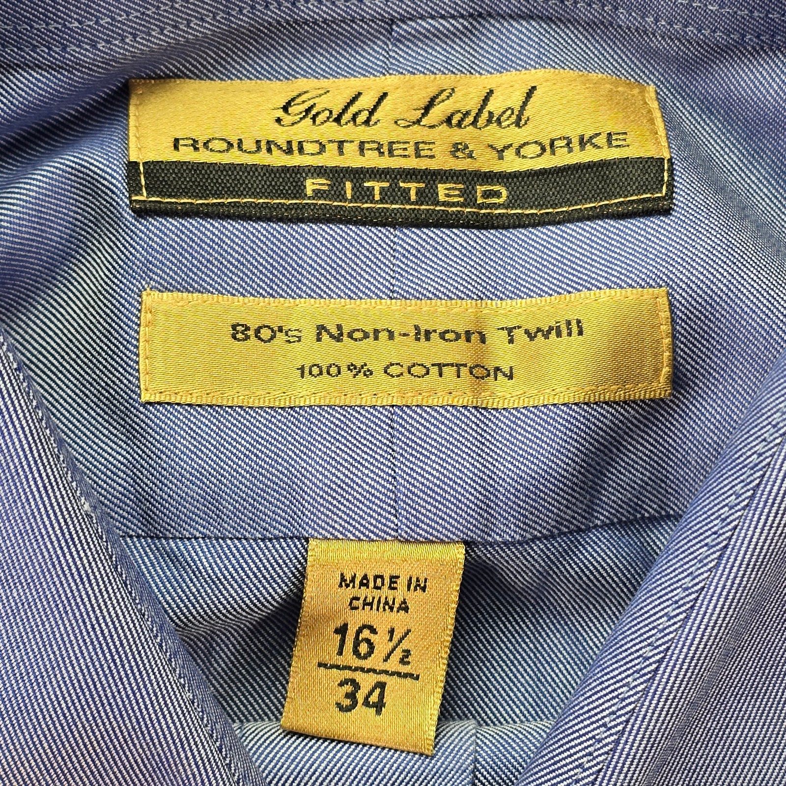 Roundtree Yorke Gold Label Dress Shirt Mens 16.5 34 Fitted Blue Non Iron Twill