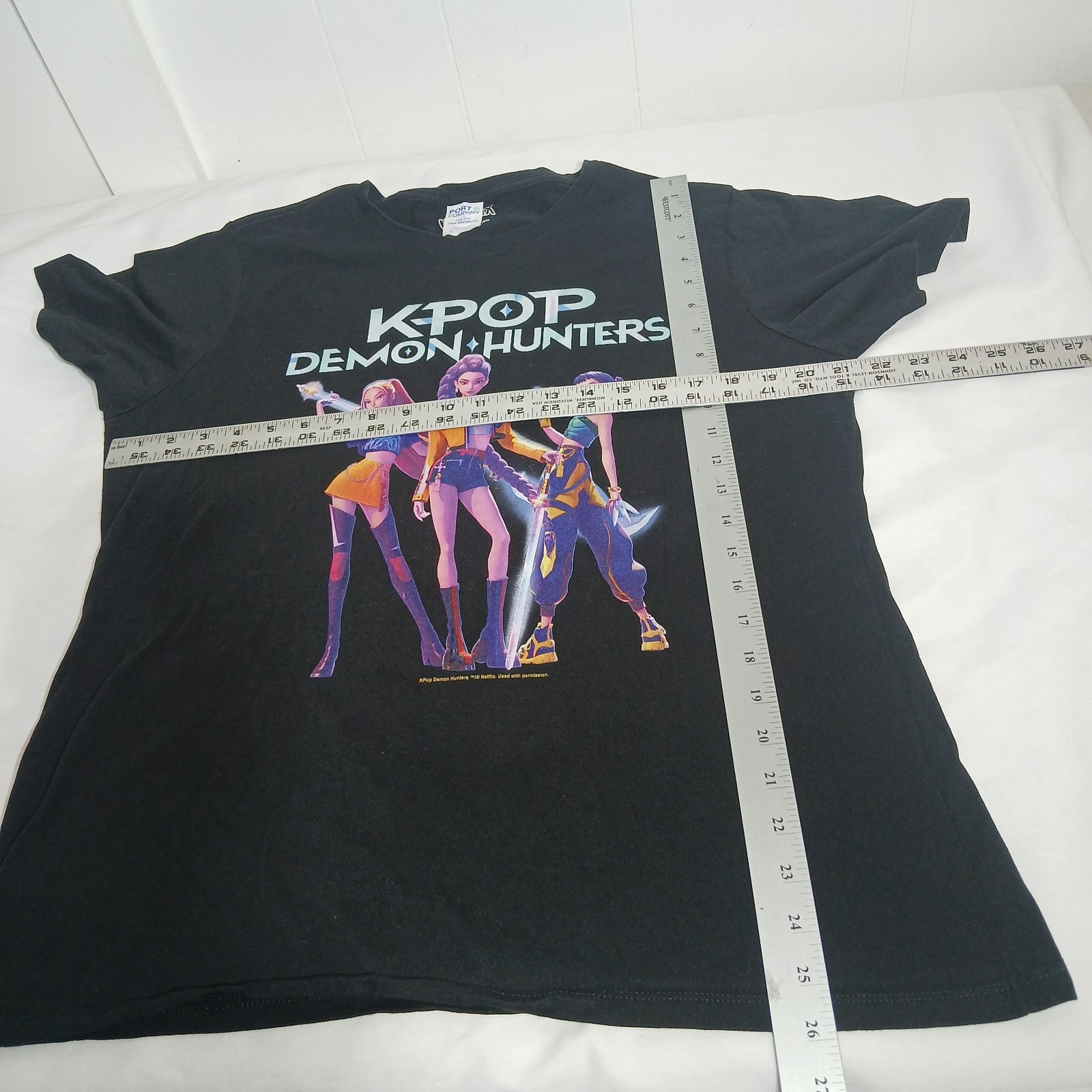 как выглядит KPop Demon Hunters Tshirt Girls Group Shot BLACK Netflix Shirt Womens Size XL фото