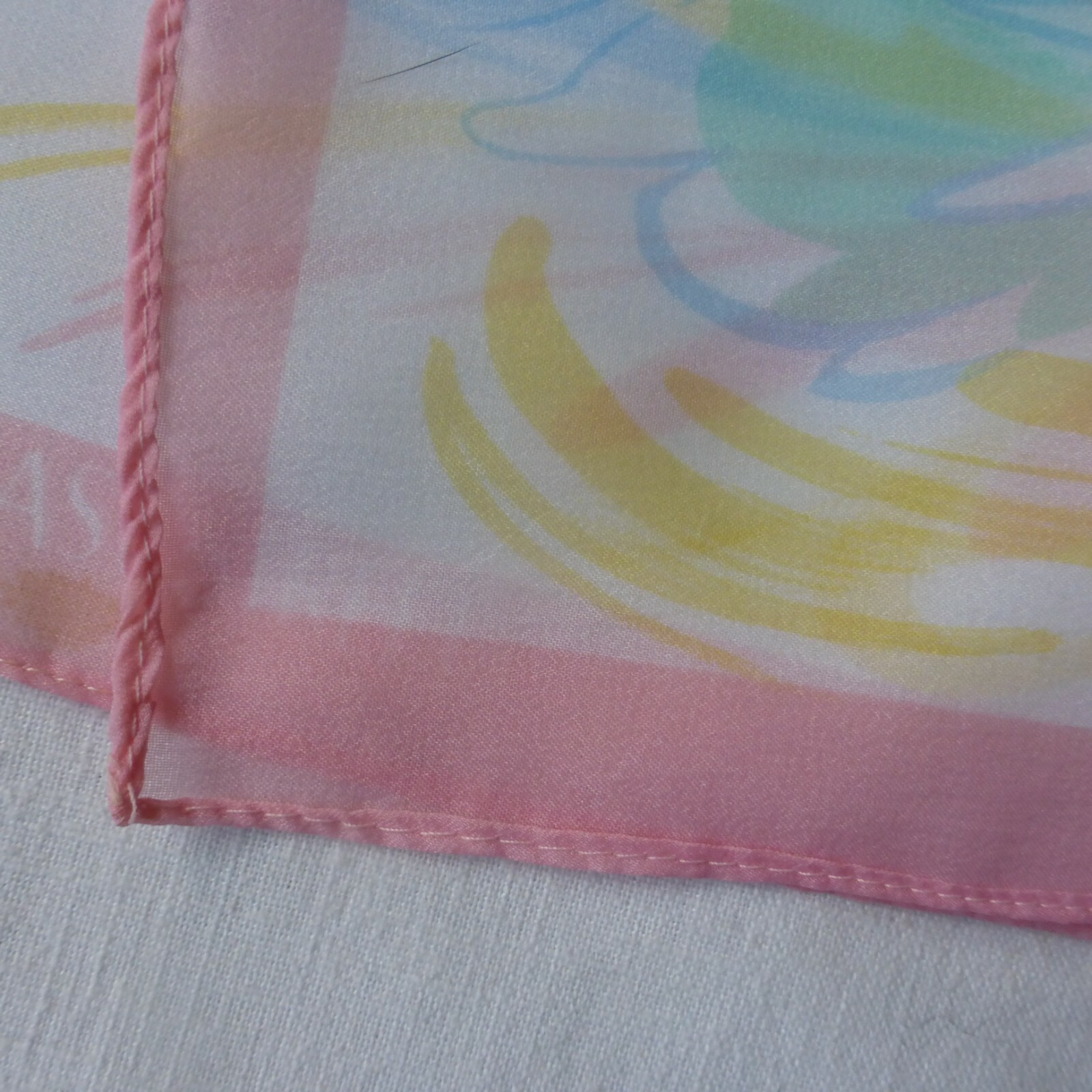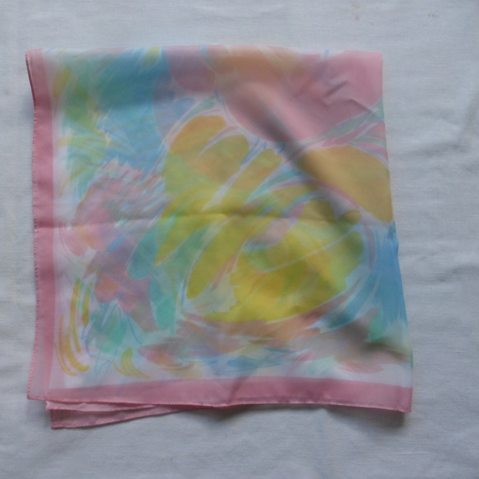 Vintage Modernist Design Pink Blue Yellow Square Chiffon Scarf Easy Street 30