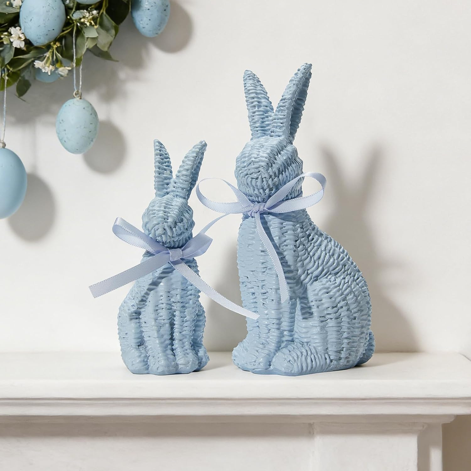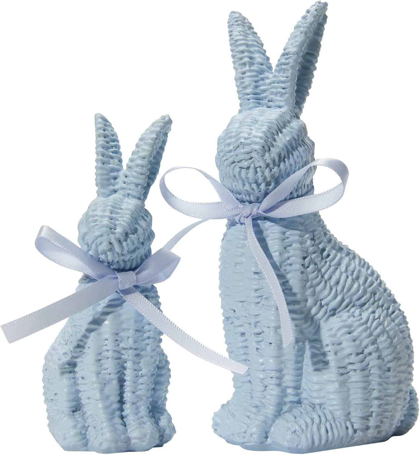 как выглядит Easter Decorations Bunny Figurines Set, Blue Rattan Effect Resin Table Decor Set фото
