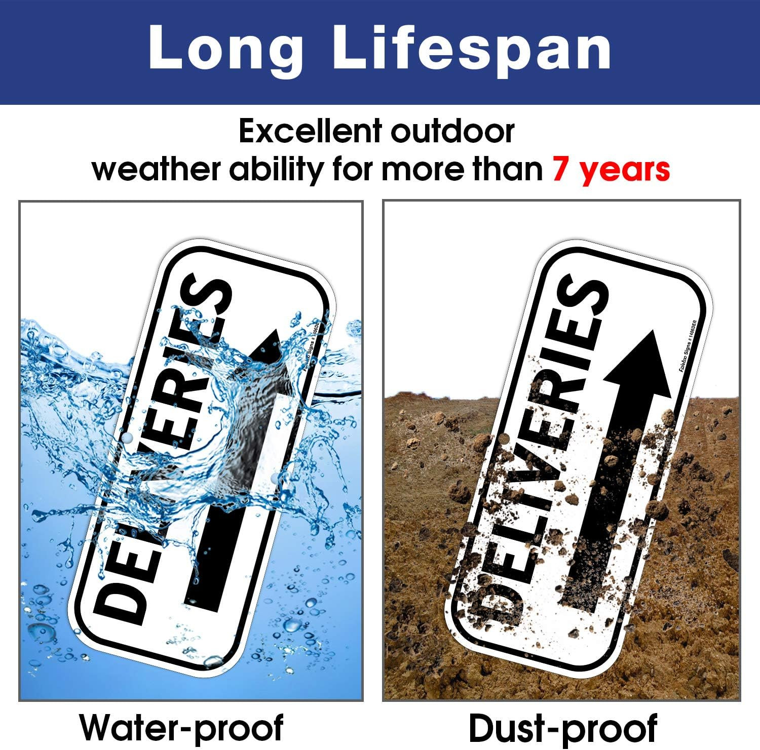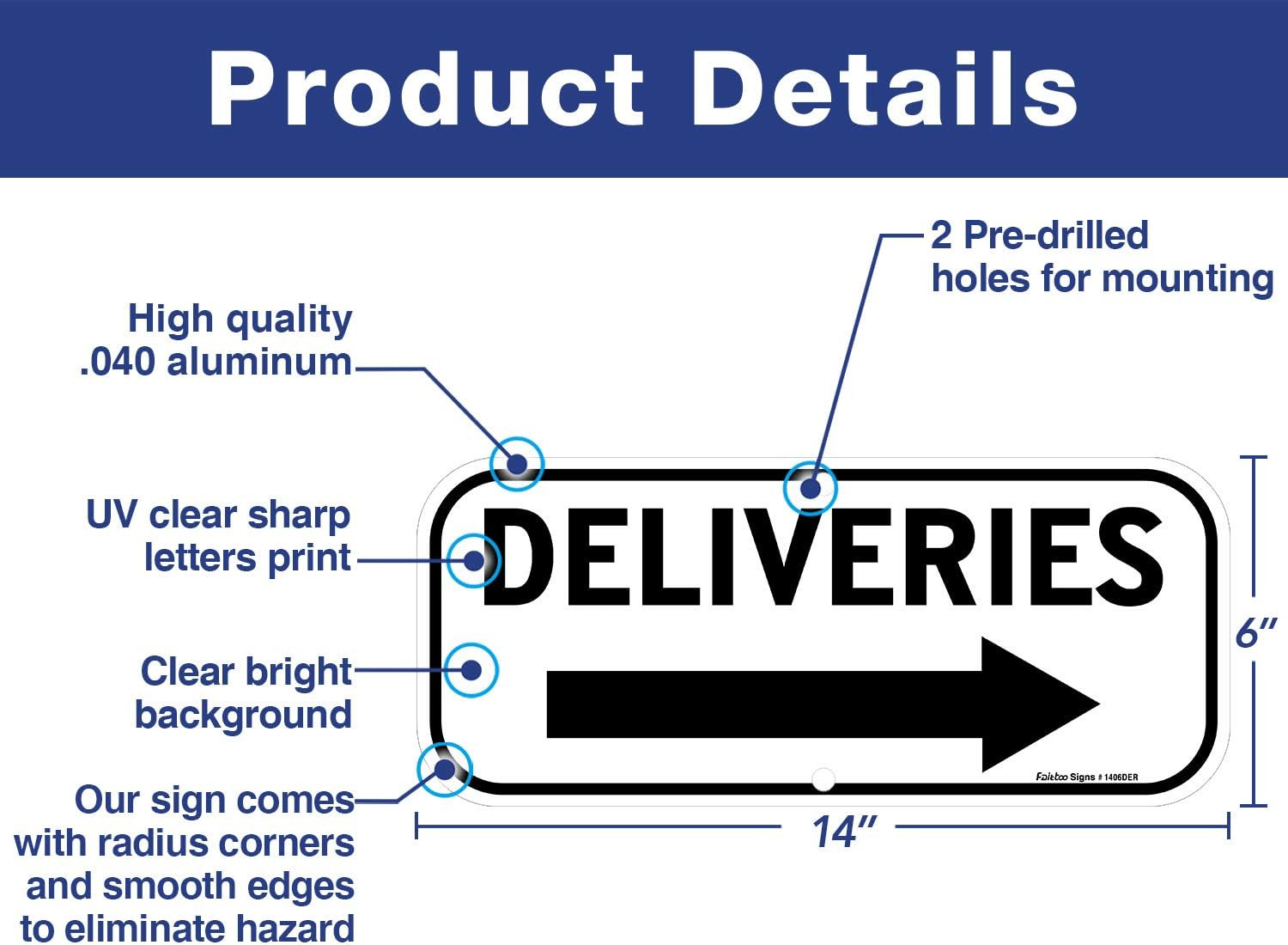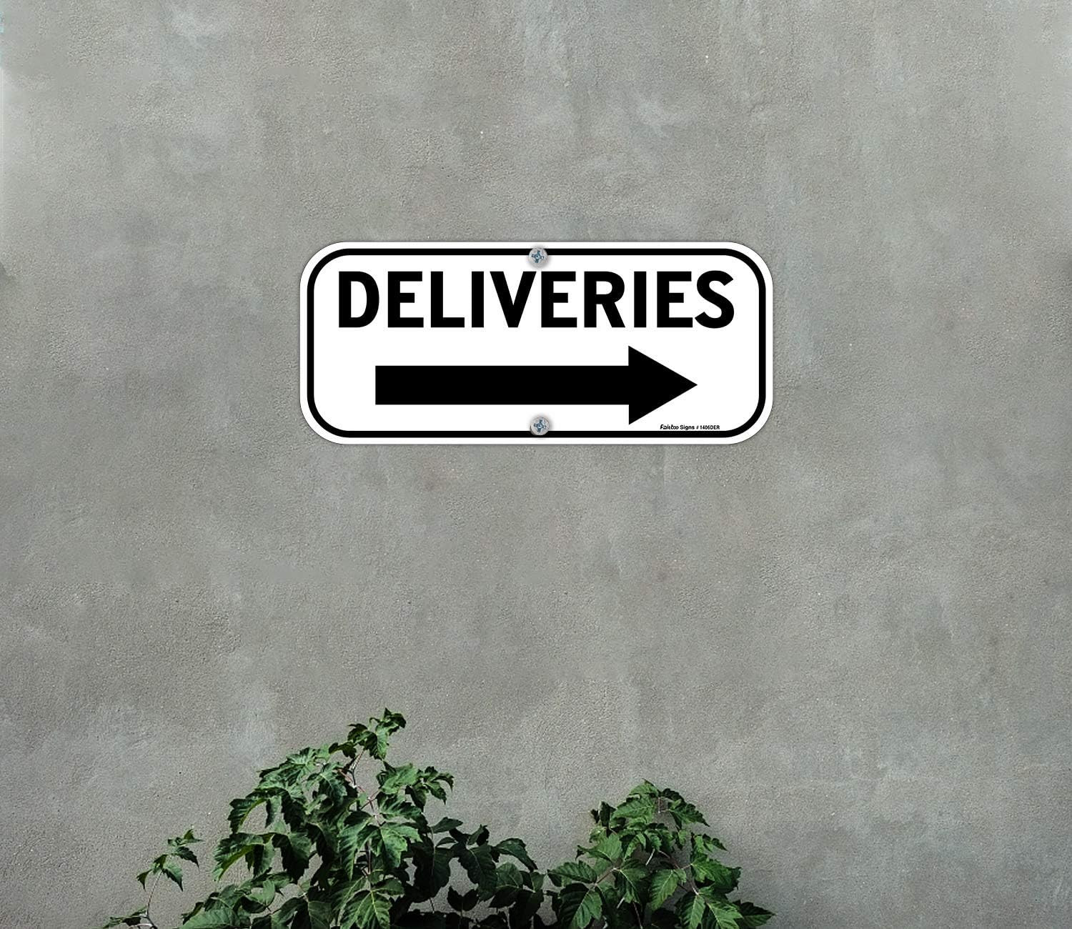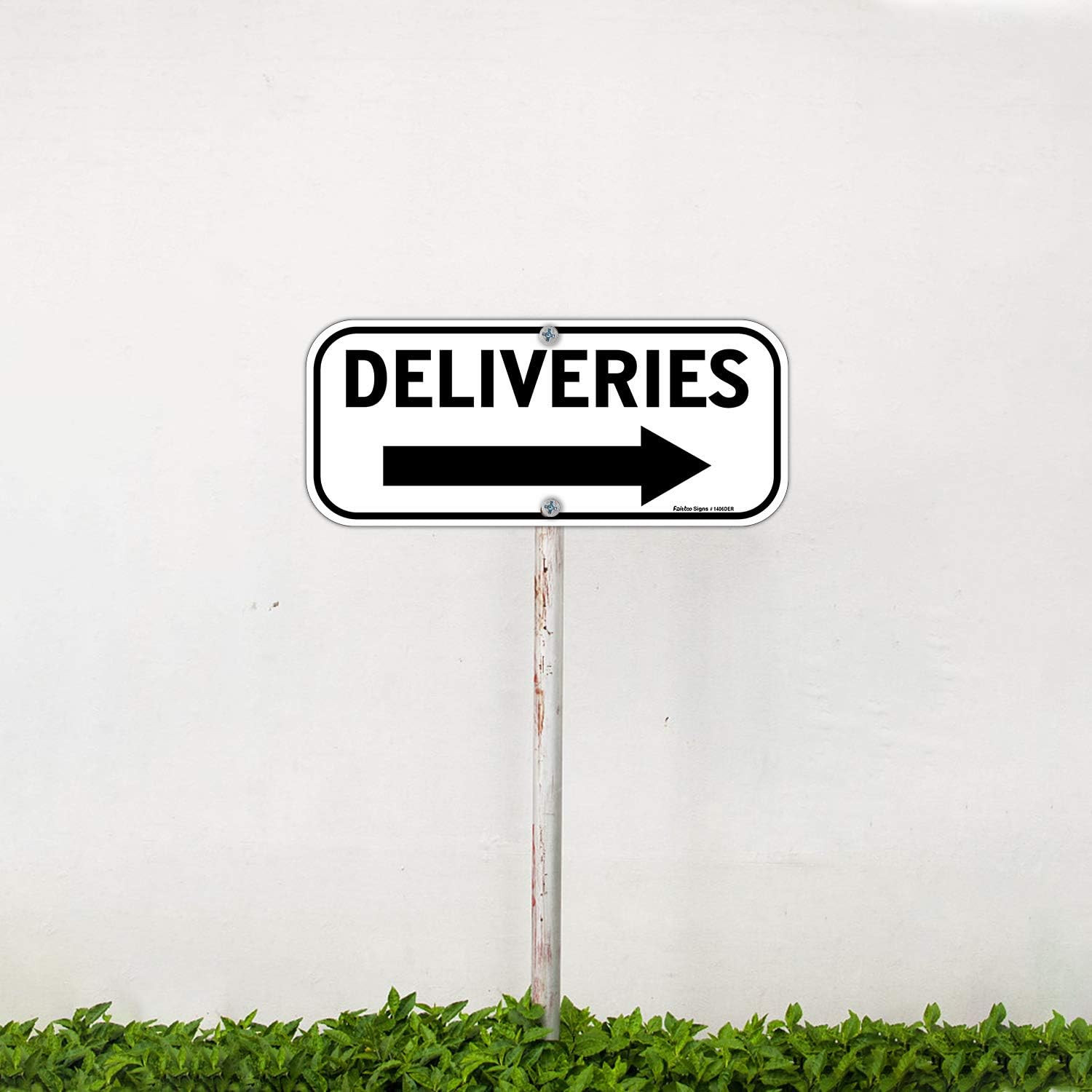 Deliveries Sign with Arrow, 14X6 Inches Rectangle Rust Free Aluminum Metal Sign,