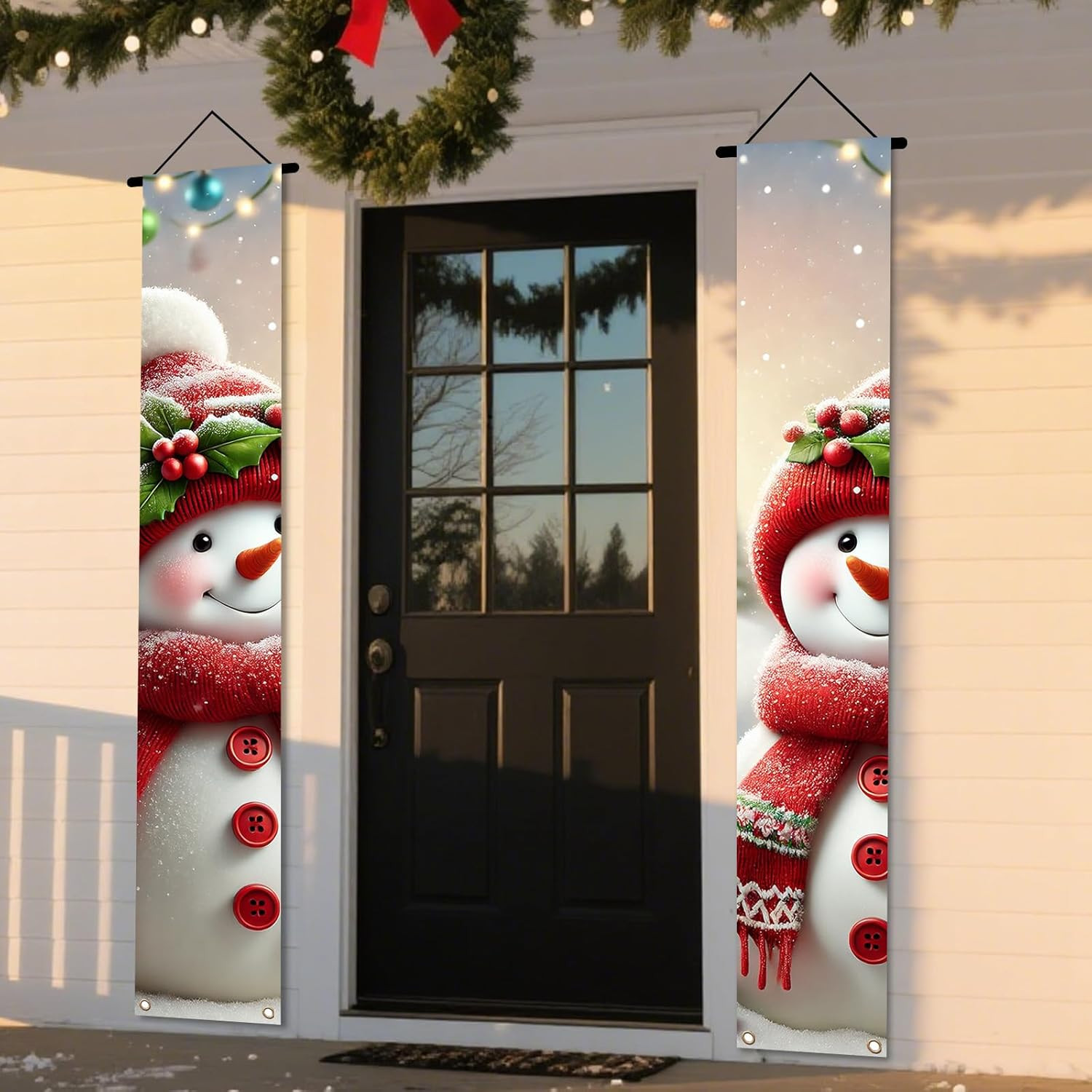 Winter Christmas Decor Outdoor Yard Front Porch Sign Set, Red Scarf Snowman Door