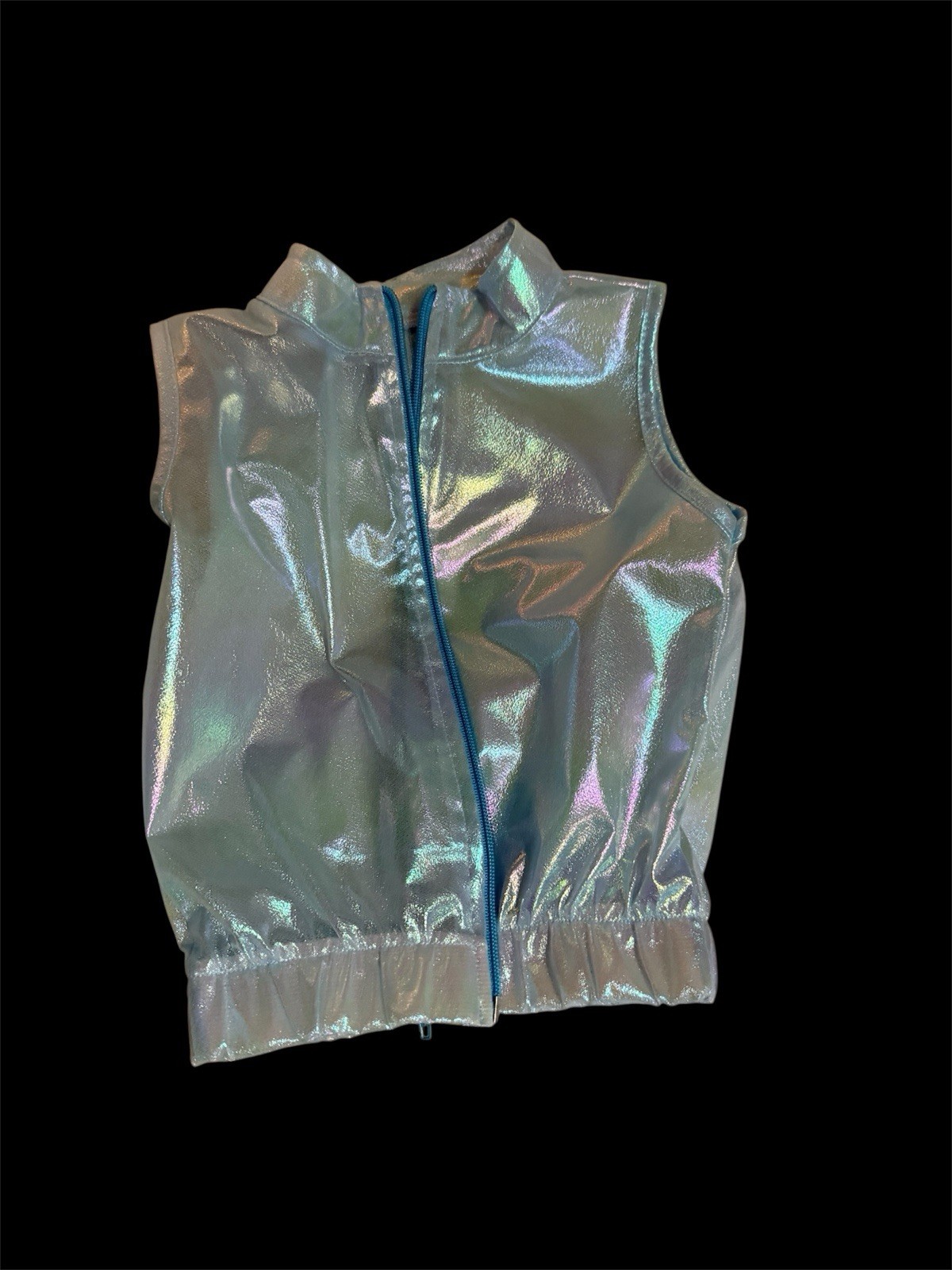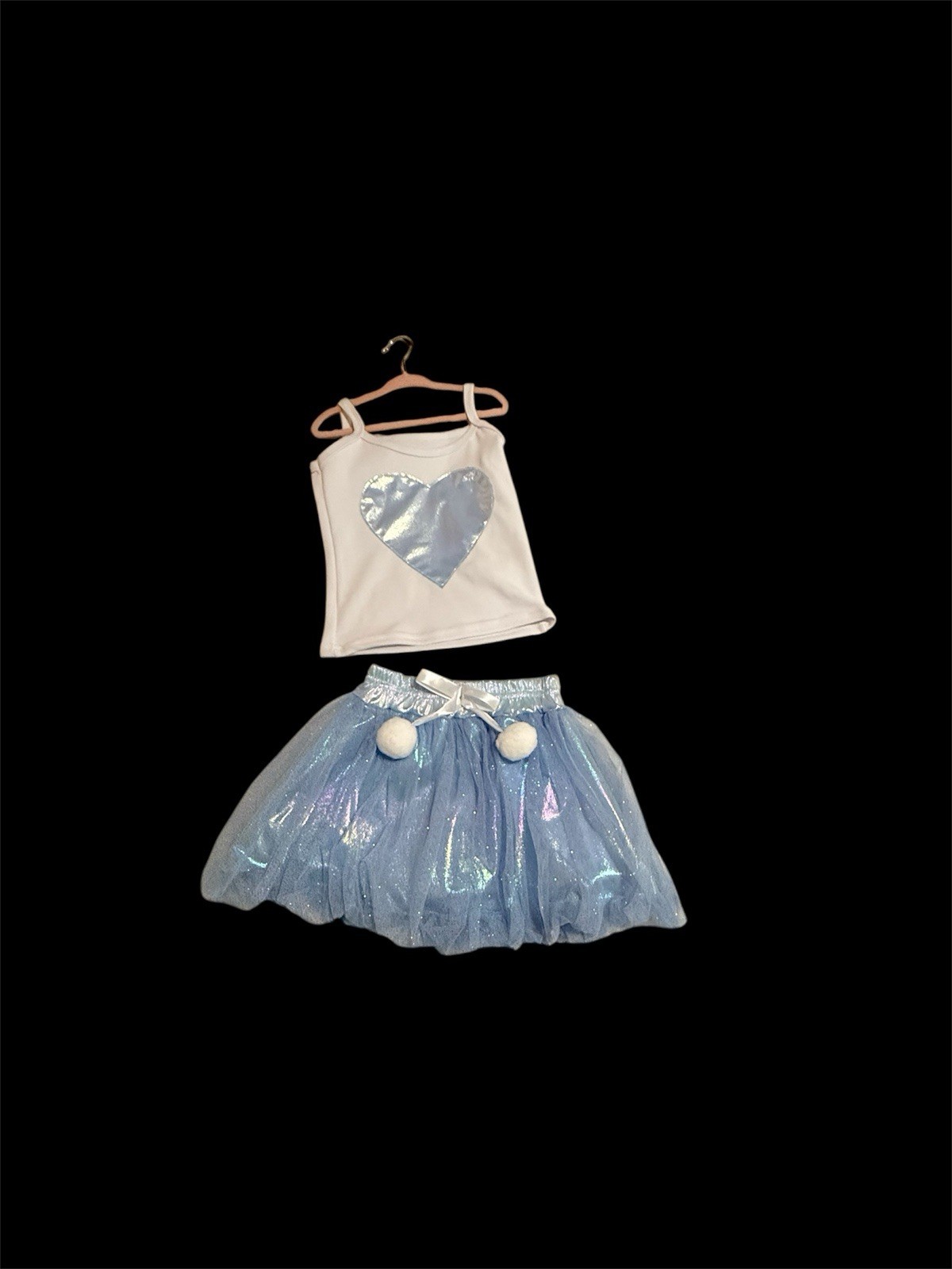 Girls sassy Set Blue White Sleeveless Top Iridescent Vest Tulle Skirt Pom-Poms