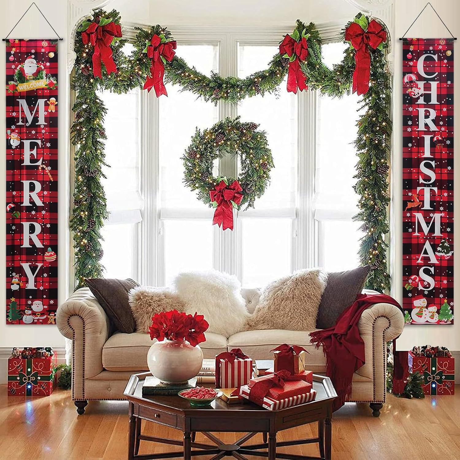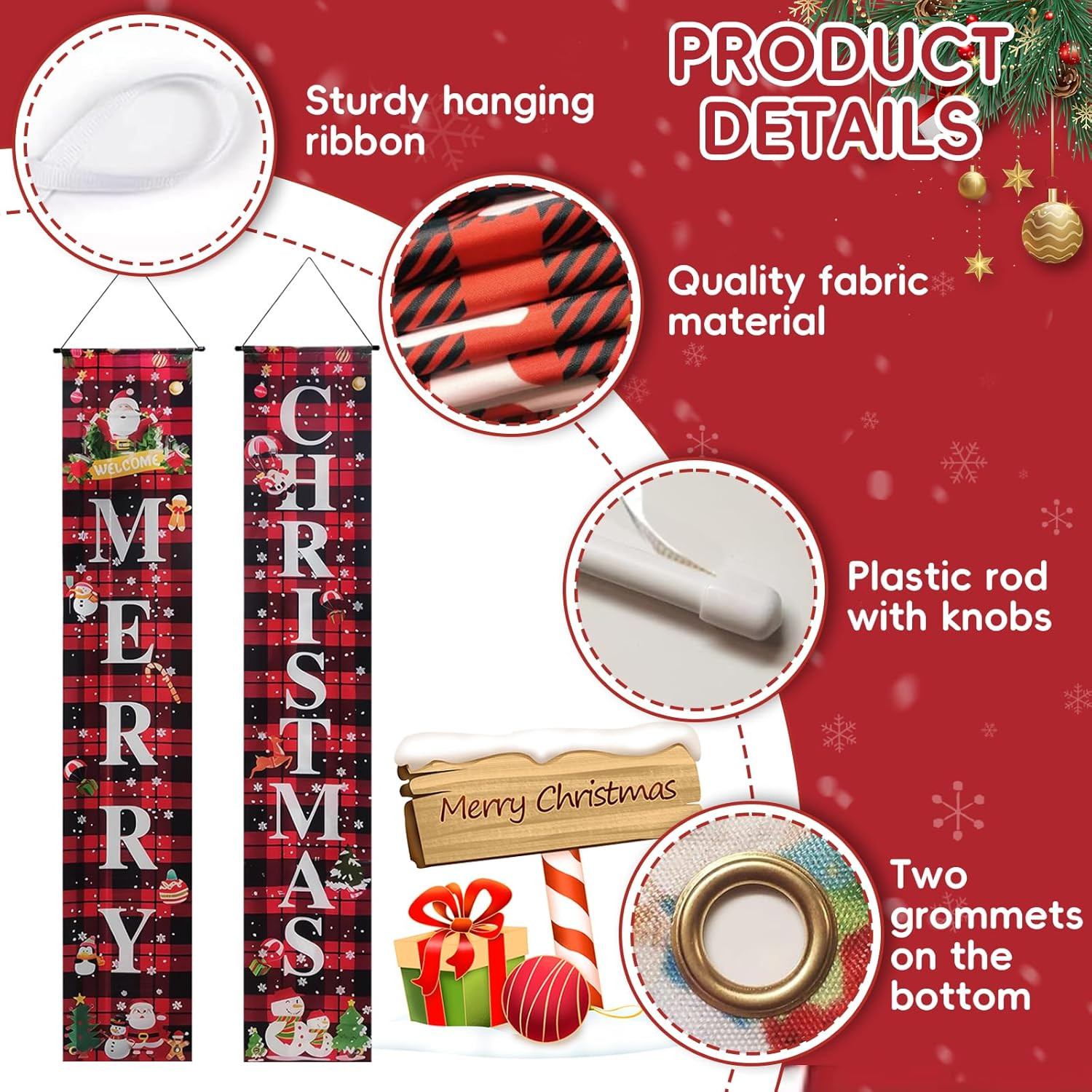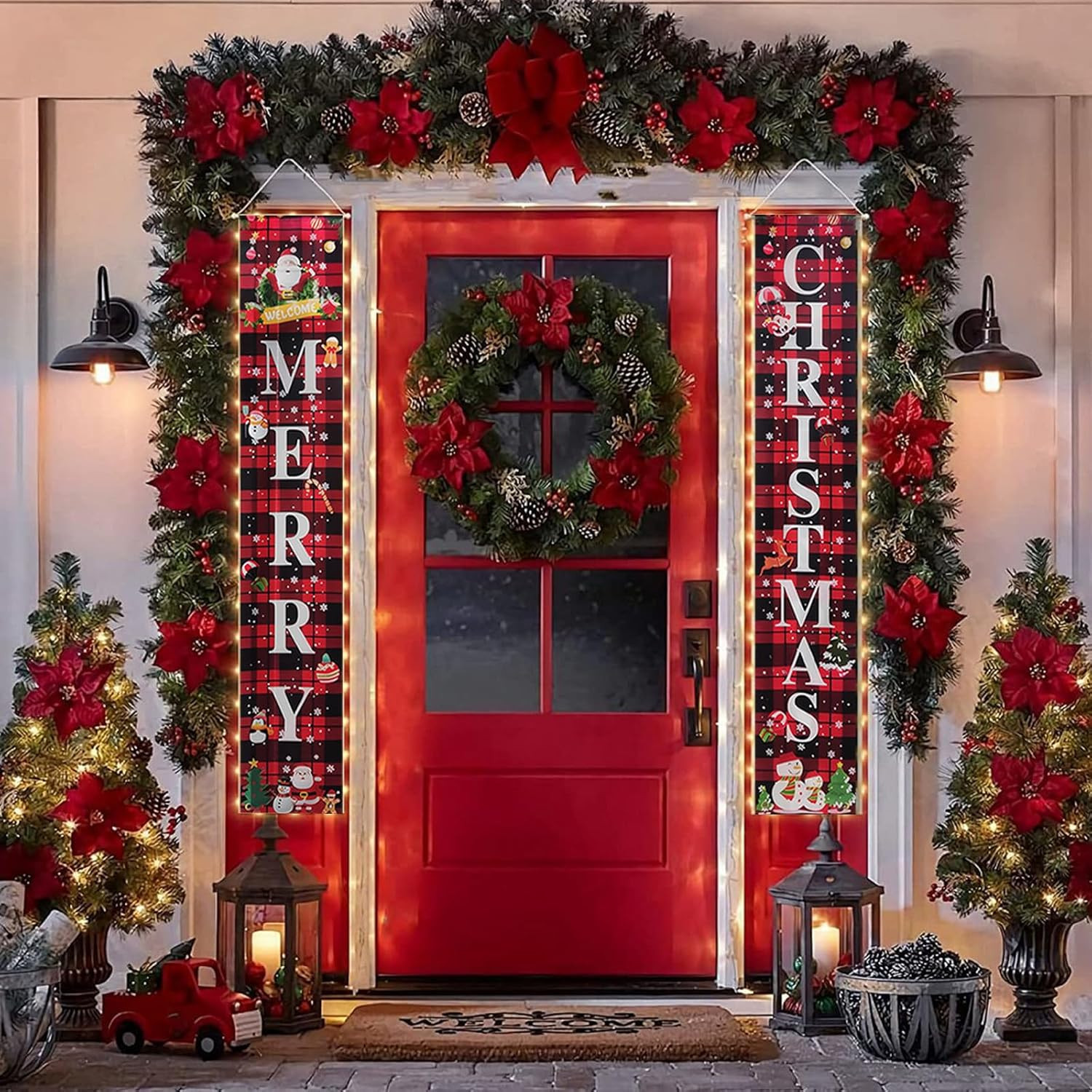 Christmas Decorations Outdoor Yard Front Porch Sign Set, Red Black Front Porch S