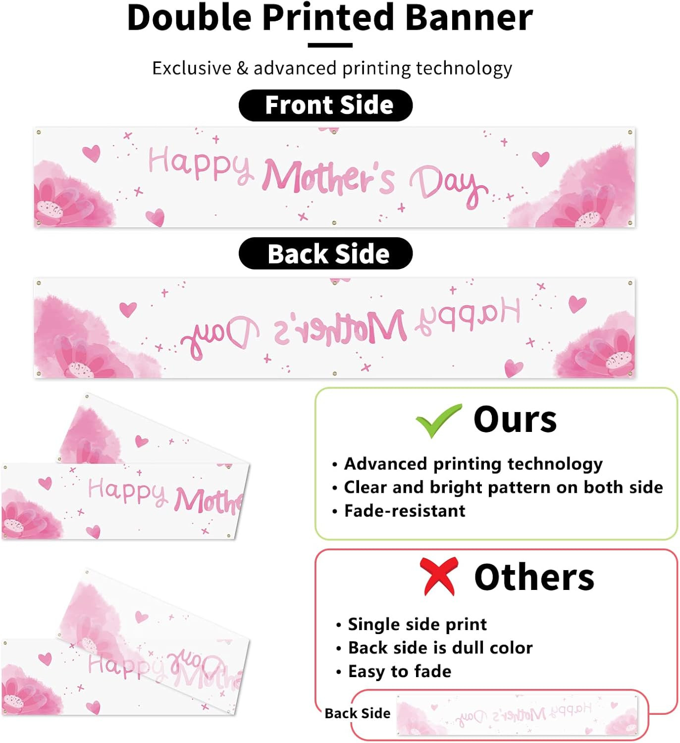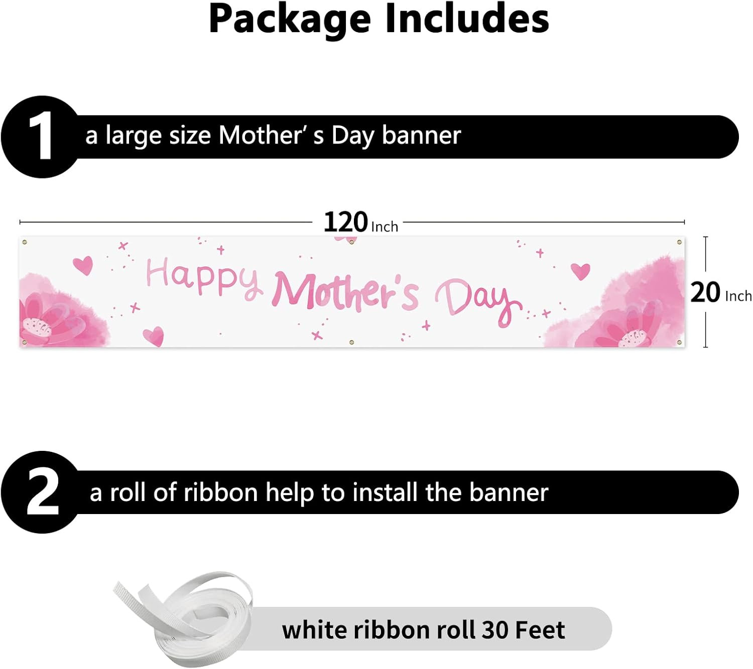 как выглядит Large Happy MotherS Day Banner Decorations 120X20 Inch Mothers Day Yard Sign Ho фото