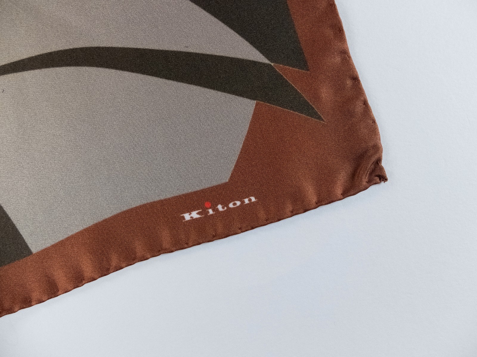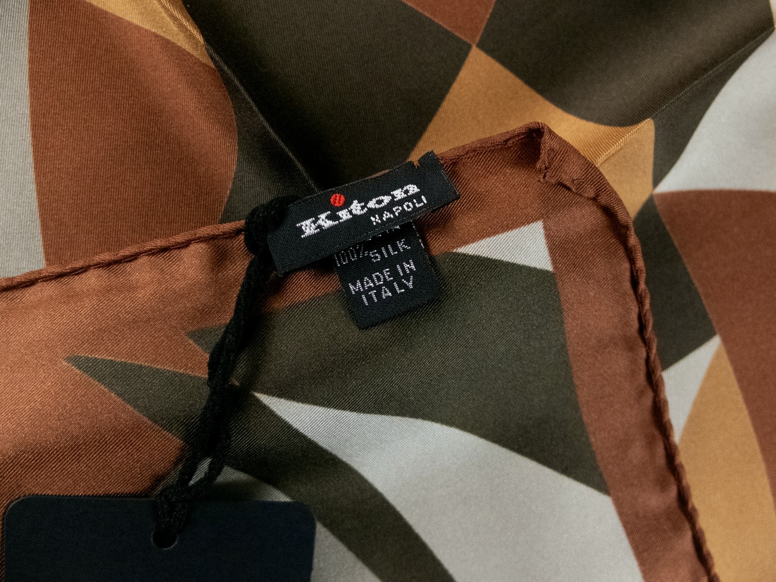 NO CUSTOMS TAX KITON Napoli earth tones abstract print silk pocket square