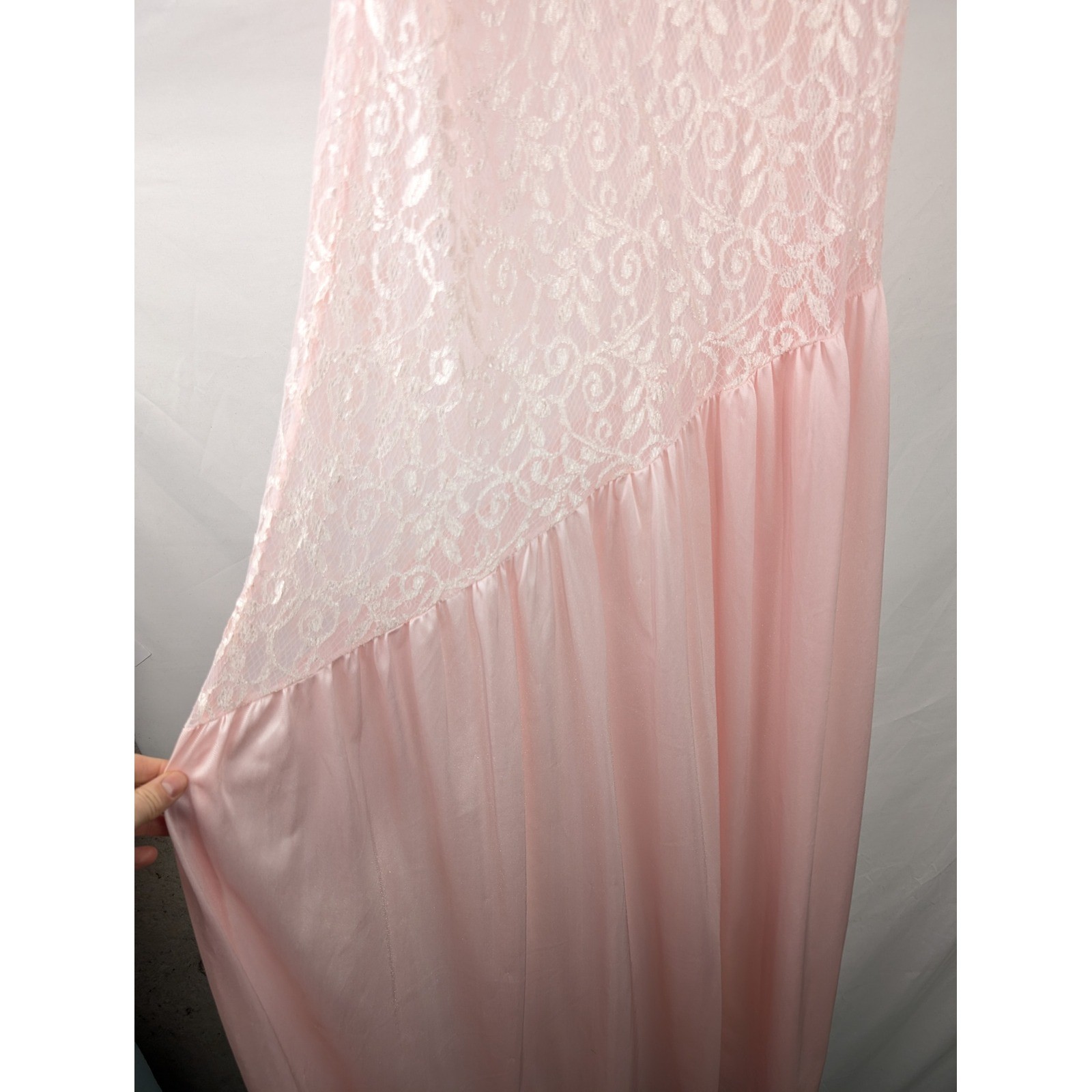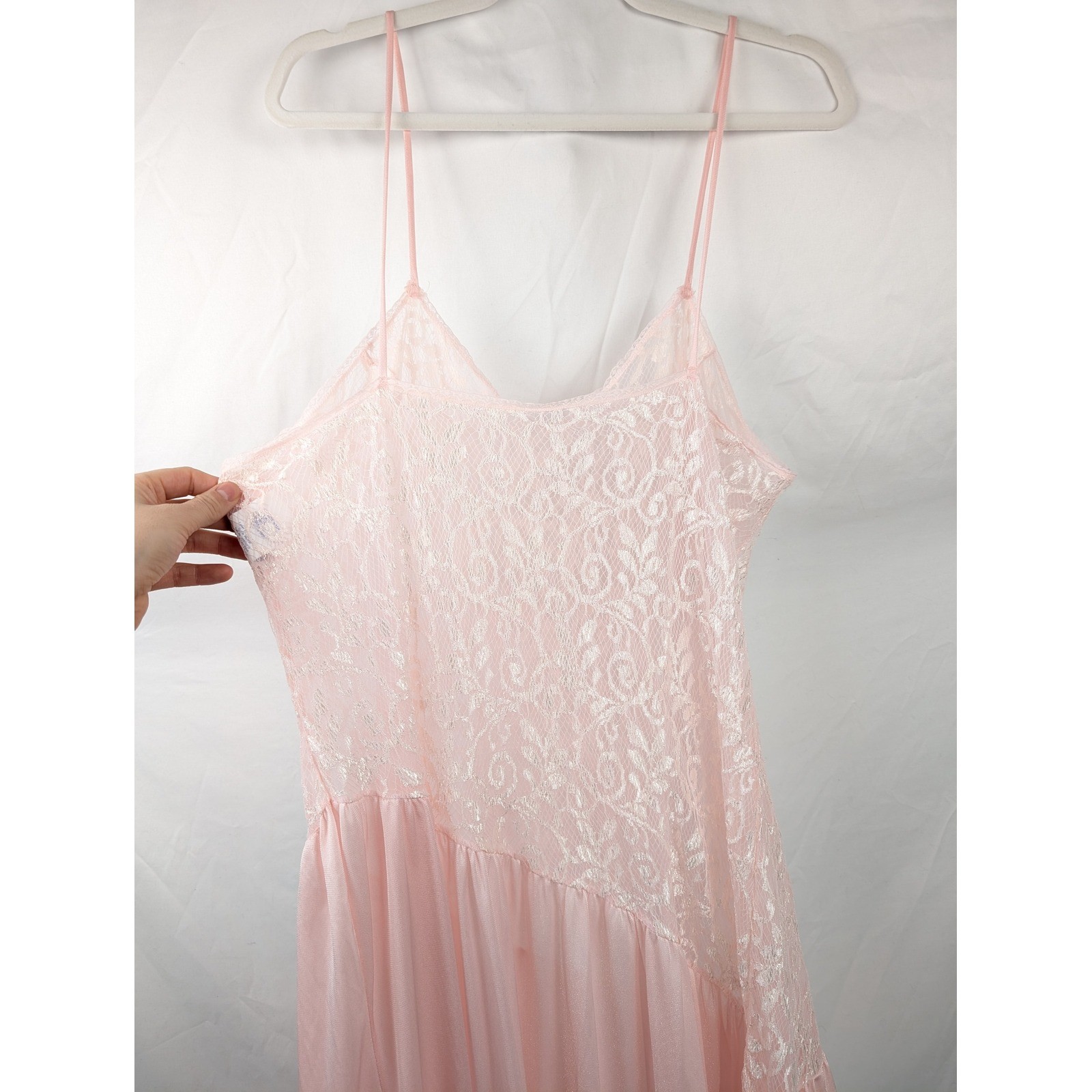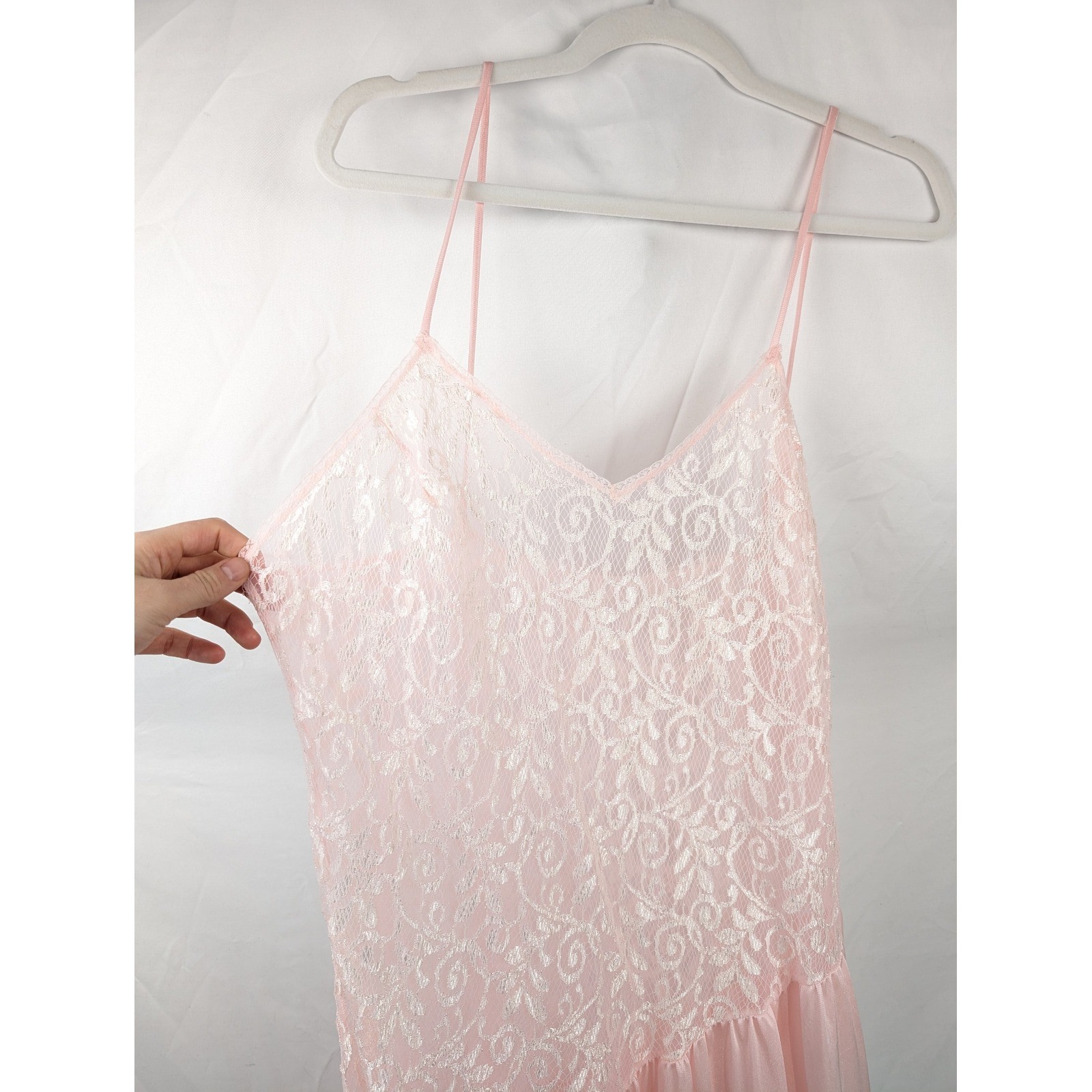 как выглядит Vtg Pink Lace Full Slip Dress Cami Chemise Nightie Babydoll Lingerie L Romantic фото