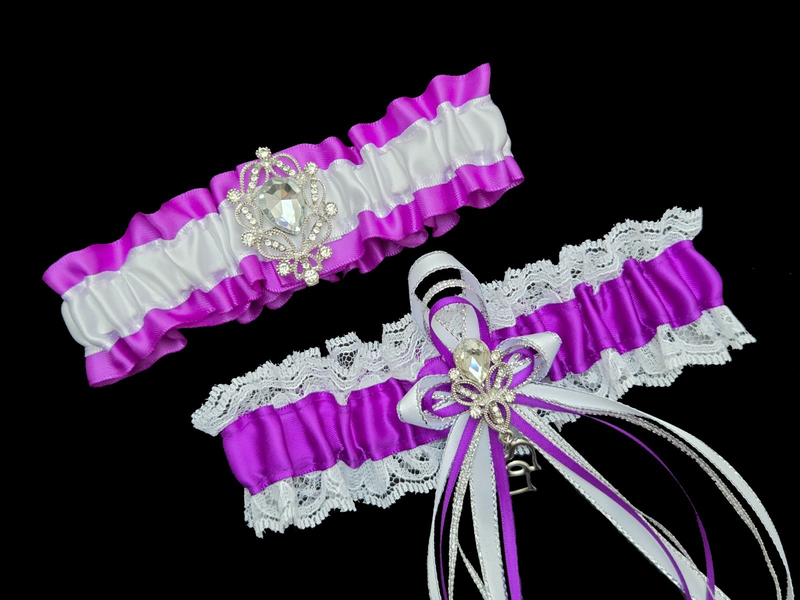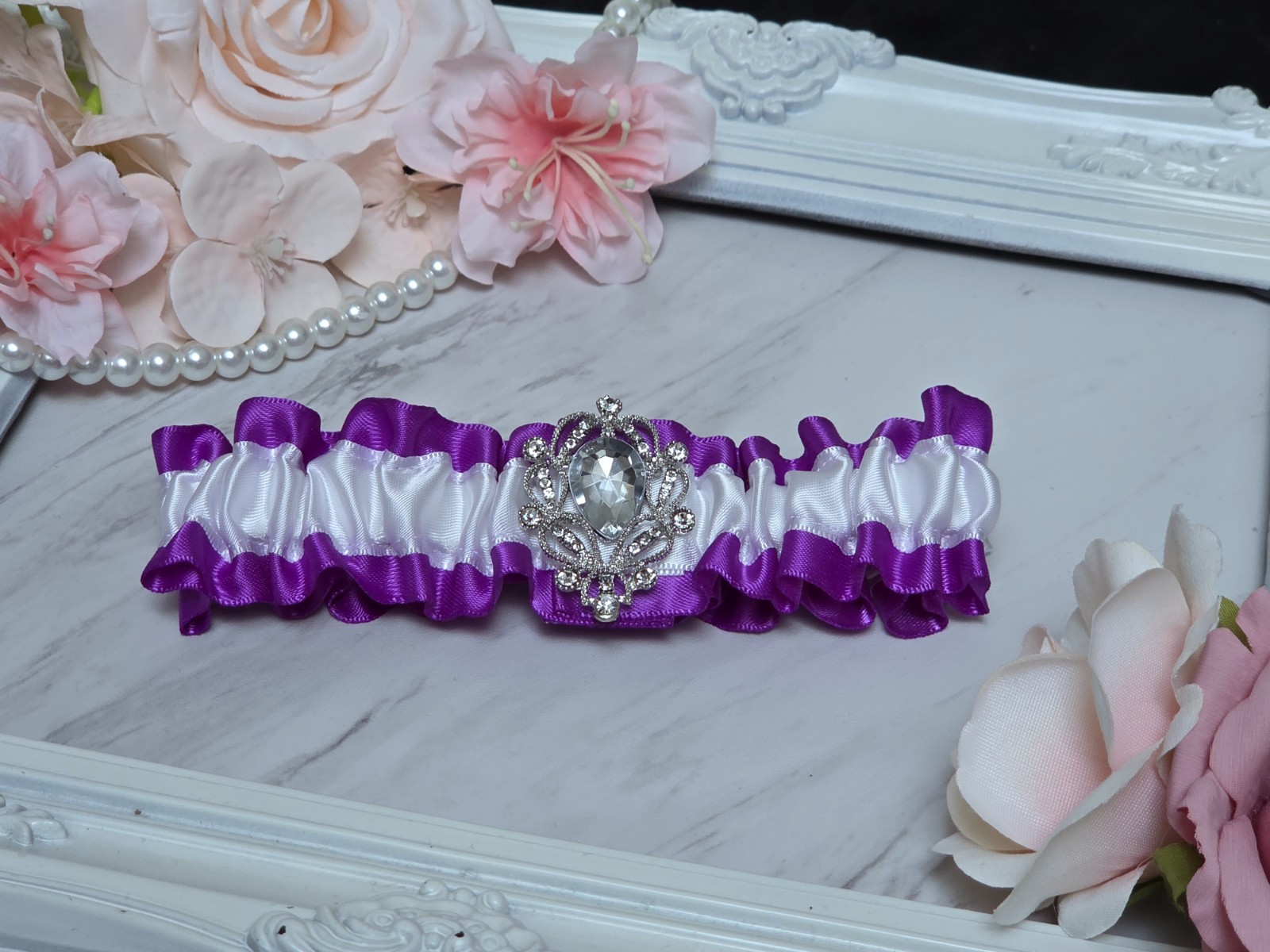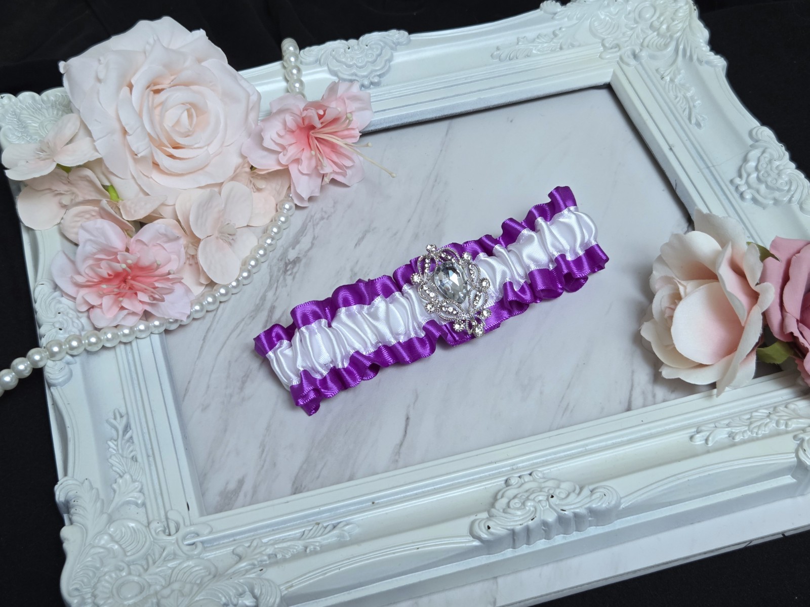 Wedding Garter Set Purple White Lace Satin Prom Bridal Rhinestones Toss