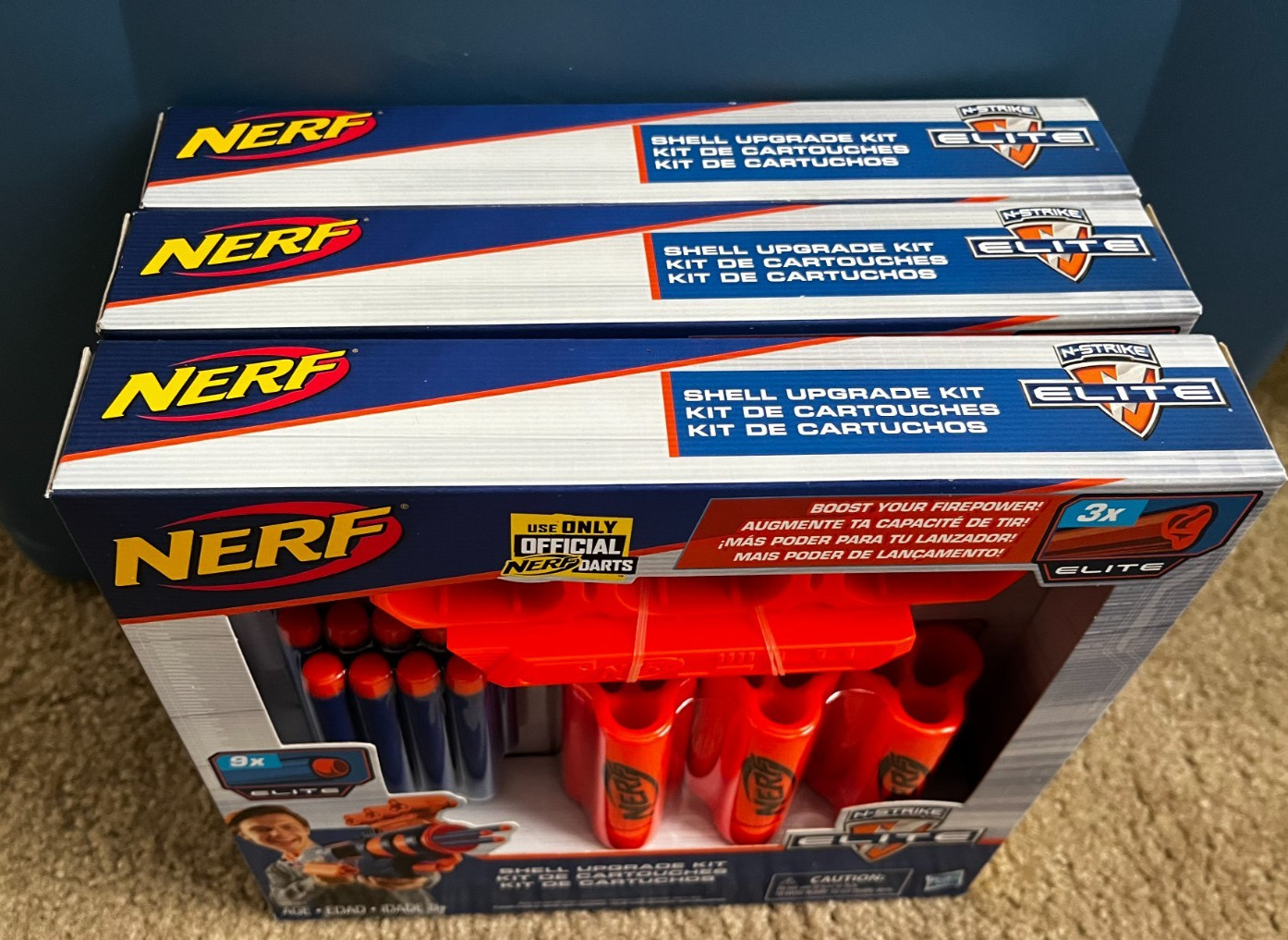 LOT of 3 NERF N-STRIKE ELITE SHELL UPGRADE KIT TRIOLOGY SHELLSTRIKE 9 DARTS NEW