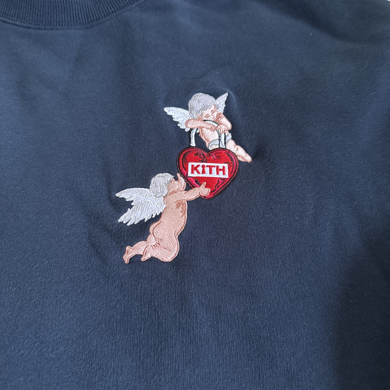 как выглядит Kith Cupid III Crewneck Cotton Fleece Sweatshirt navy Men s Size L фото