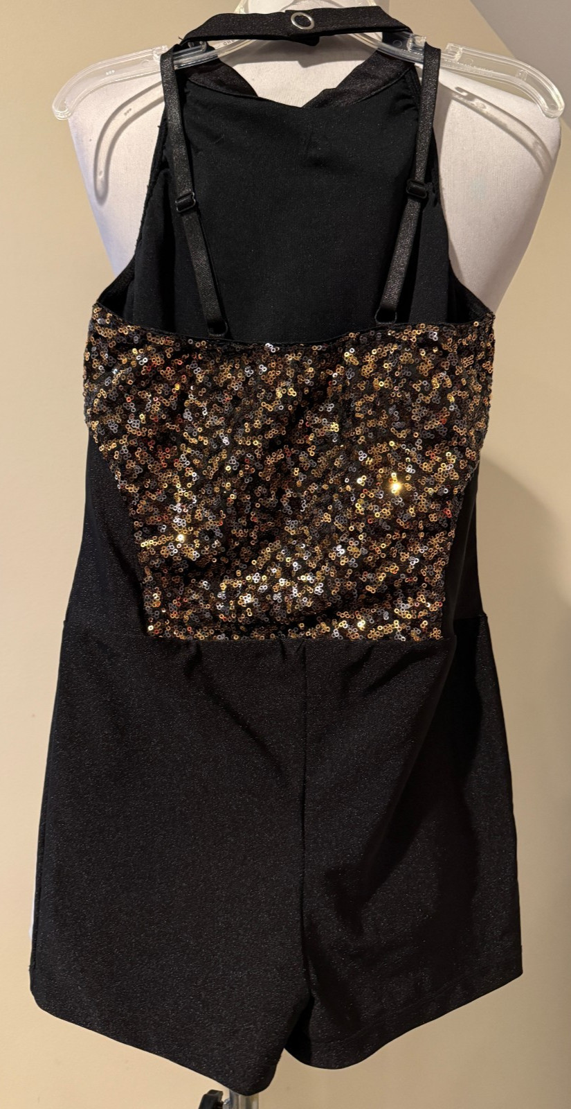 как выглядит REVOLUTION Girls Childs Costume Black with Sequin One Piece Leotard Sz LC Large фото