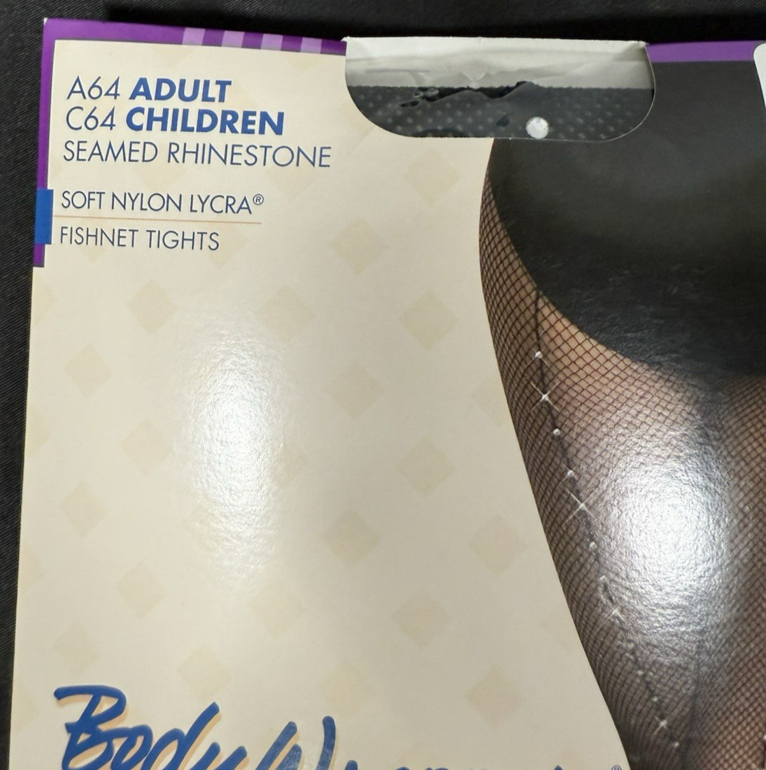 Body Wrappers A64 Black Fishnet Tights L/XL Rhinestone Back Seams USA