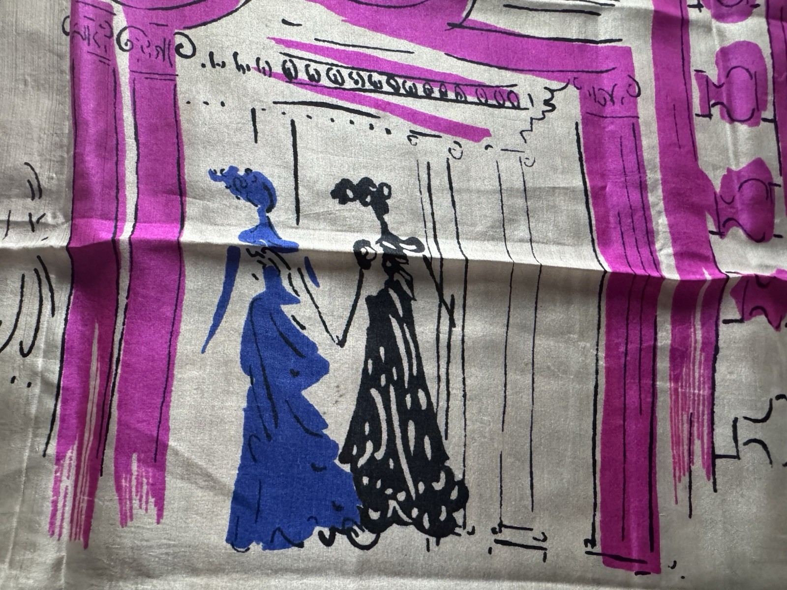 Vintage Scarf Pure Silk Paris Inspired Victorian Navy Blue, Pink, Black 34 SQ