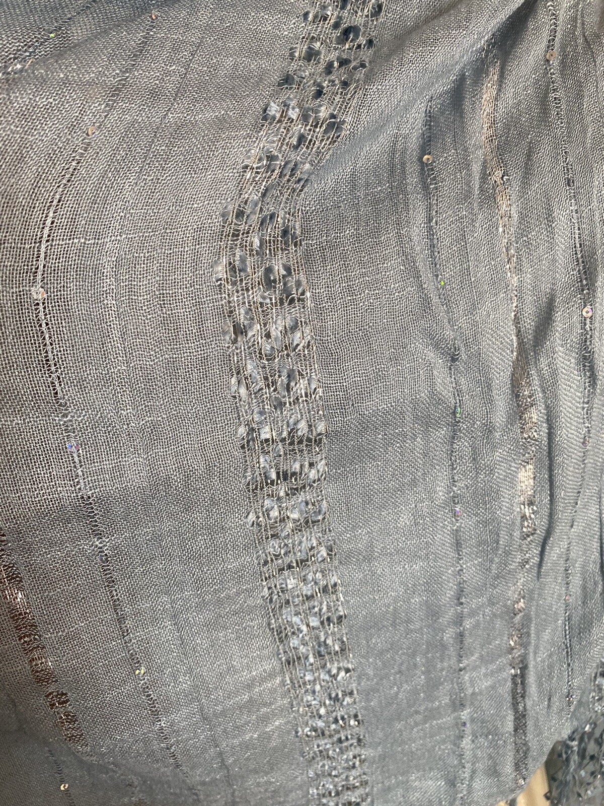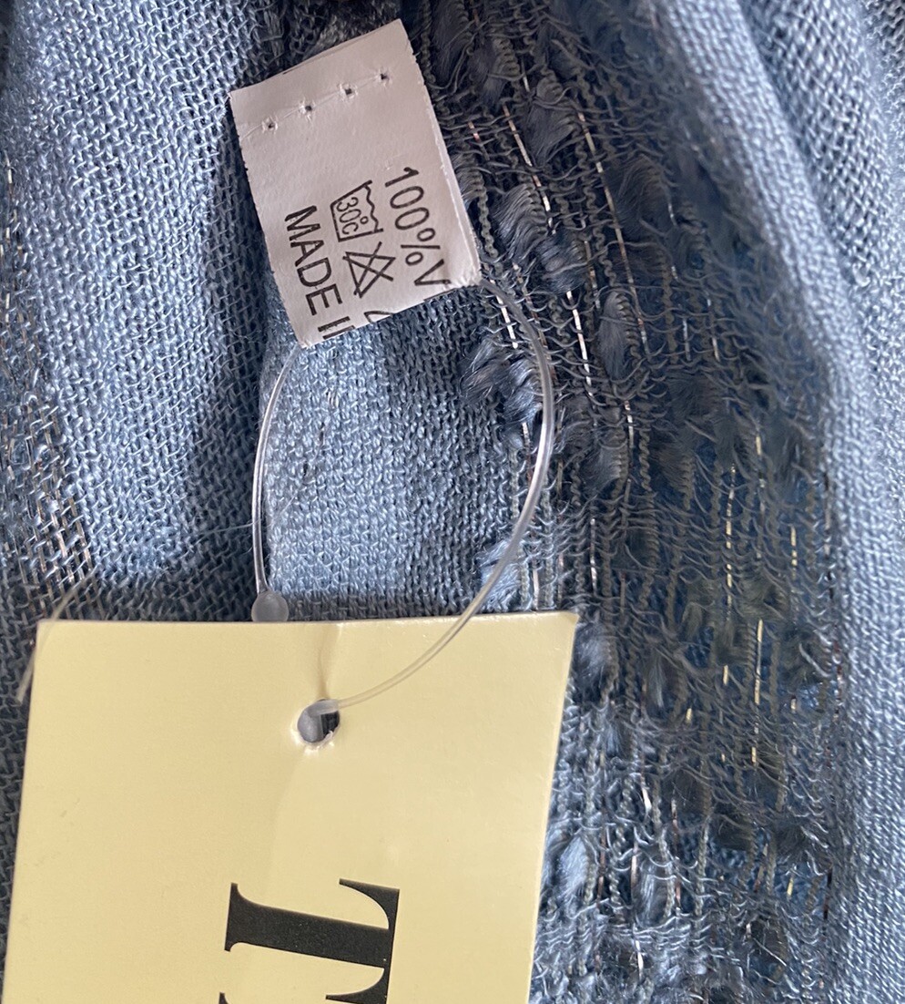 как выглядит NWT Scarf, Shawl Baby Blue Silver Metallic Thread Fringe Tan s Brand 23 X 75 фото