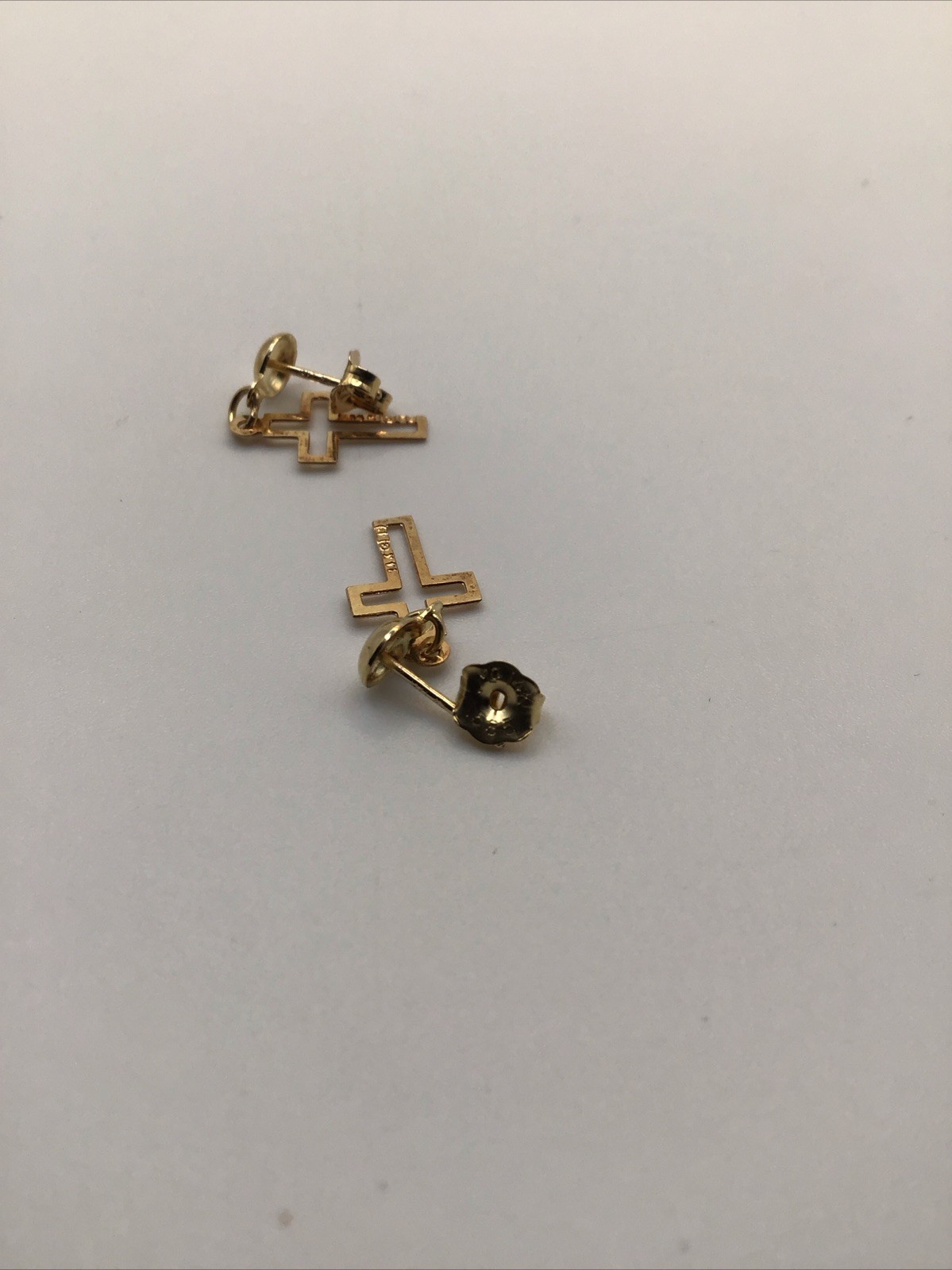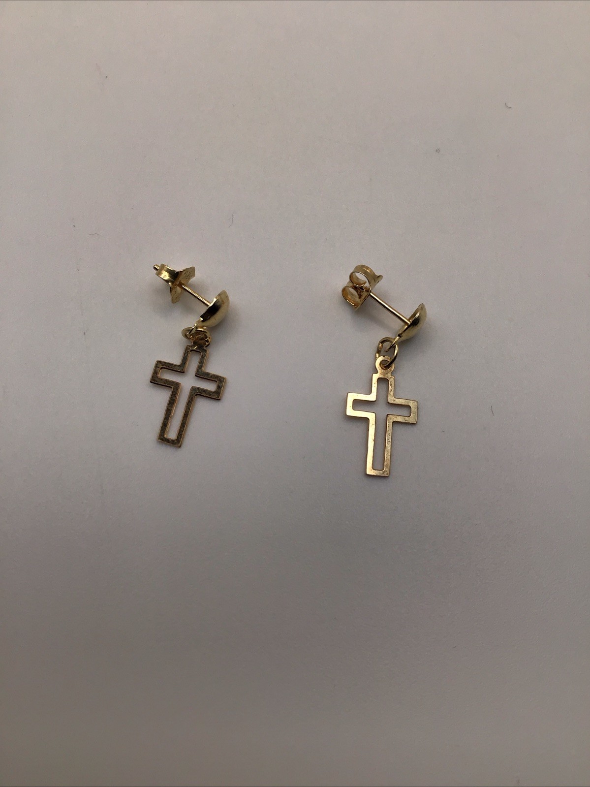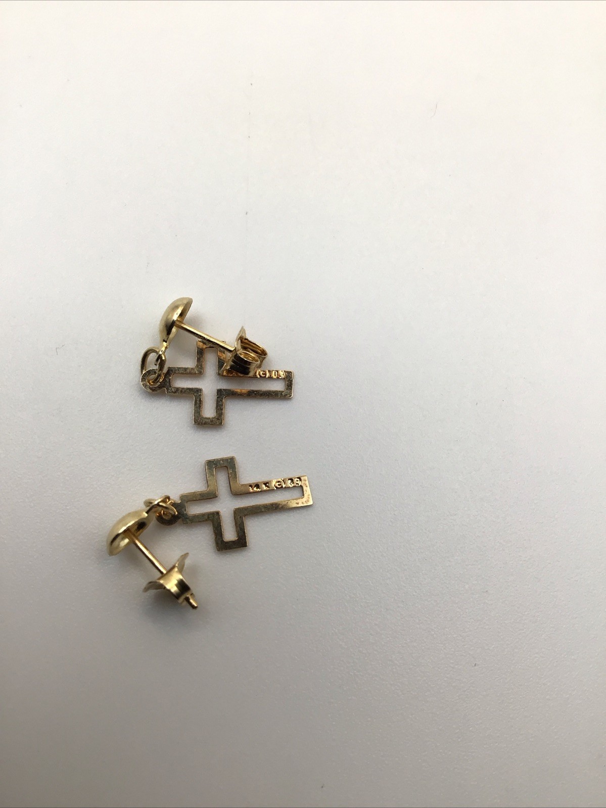 как выглядит 14k Yellow Gold Cross Dangle Stud Earrings Signed MC -0.70 Grams- фото