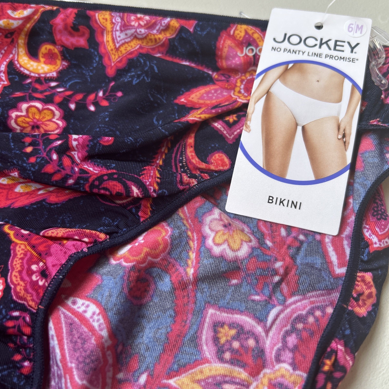 NWT JOCKEY SZ 6 M BIKINI TACTEL NO PANTY LINE PROMISE FLORAL BLUE ORANGE PANTIES