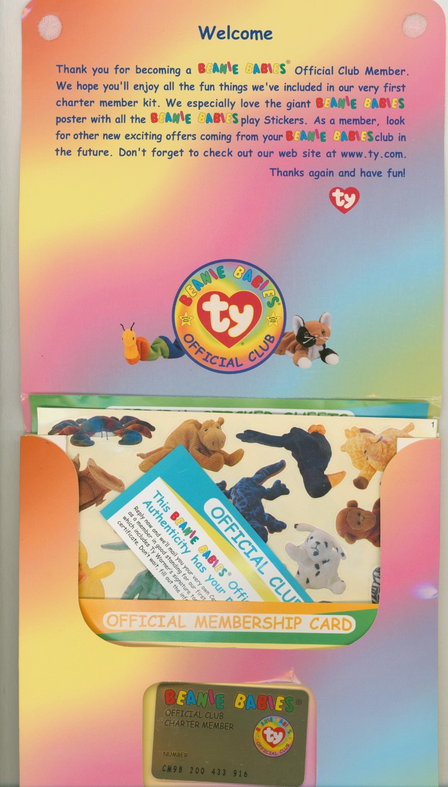 TY Beanie Babies Official Membership Kit / Card Stickers Certificate Checklist