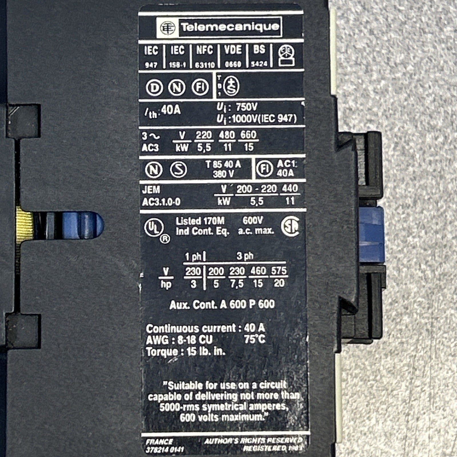 как выглядит Telemecanique LC1 D2510 750V 40A Contactor фото