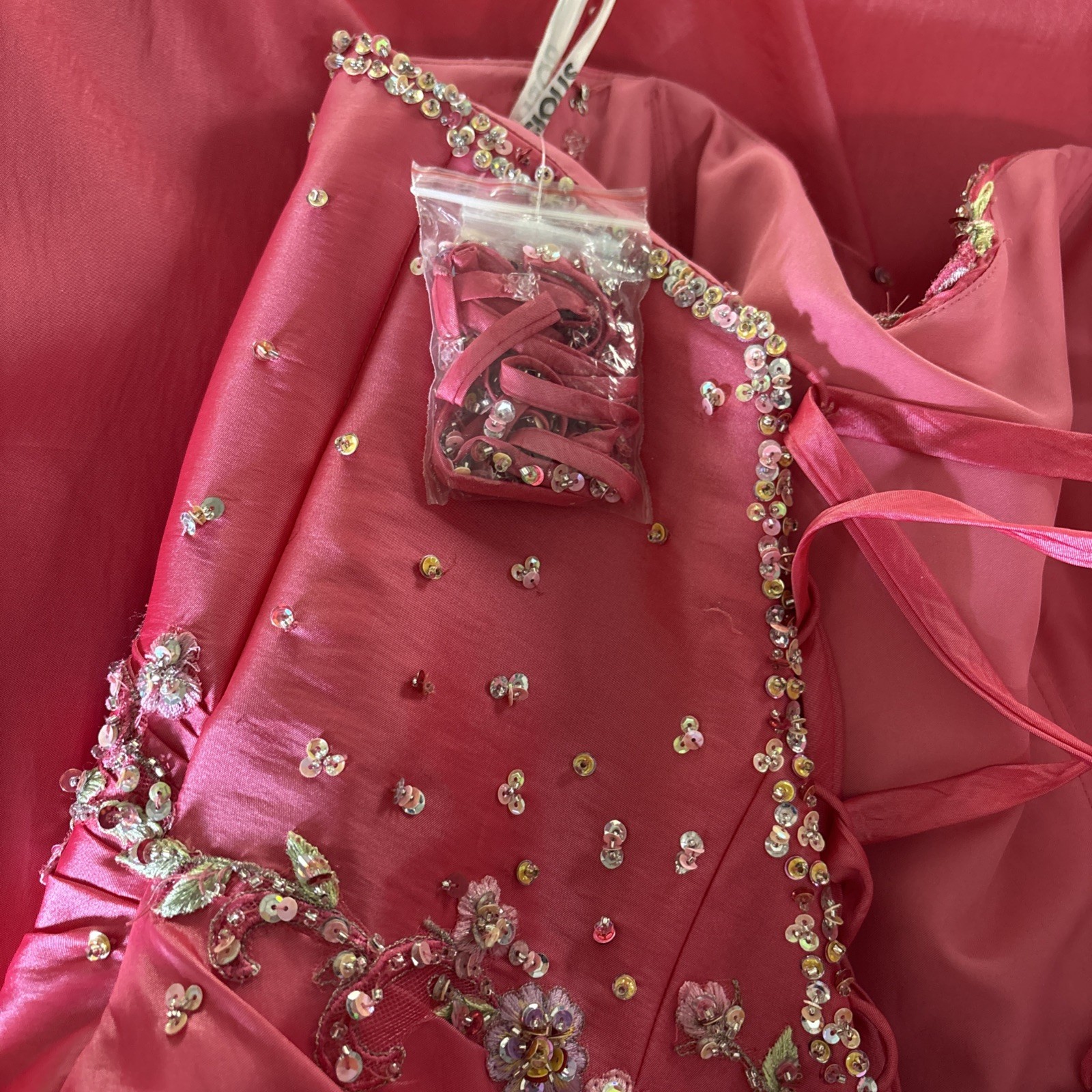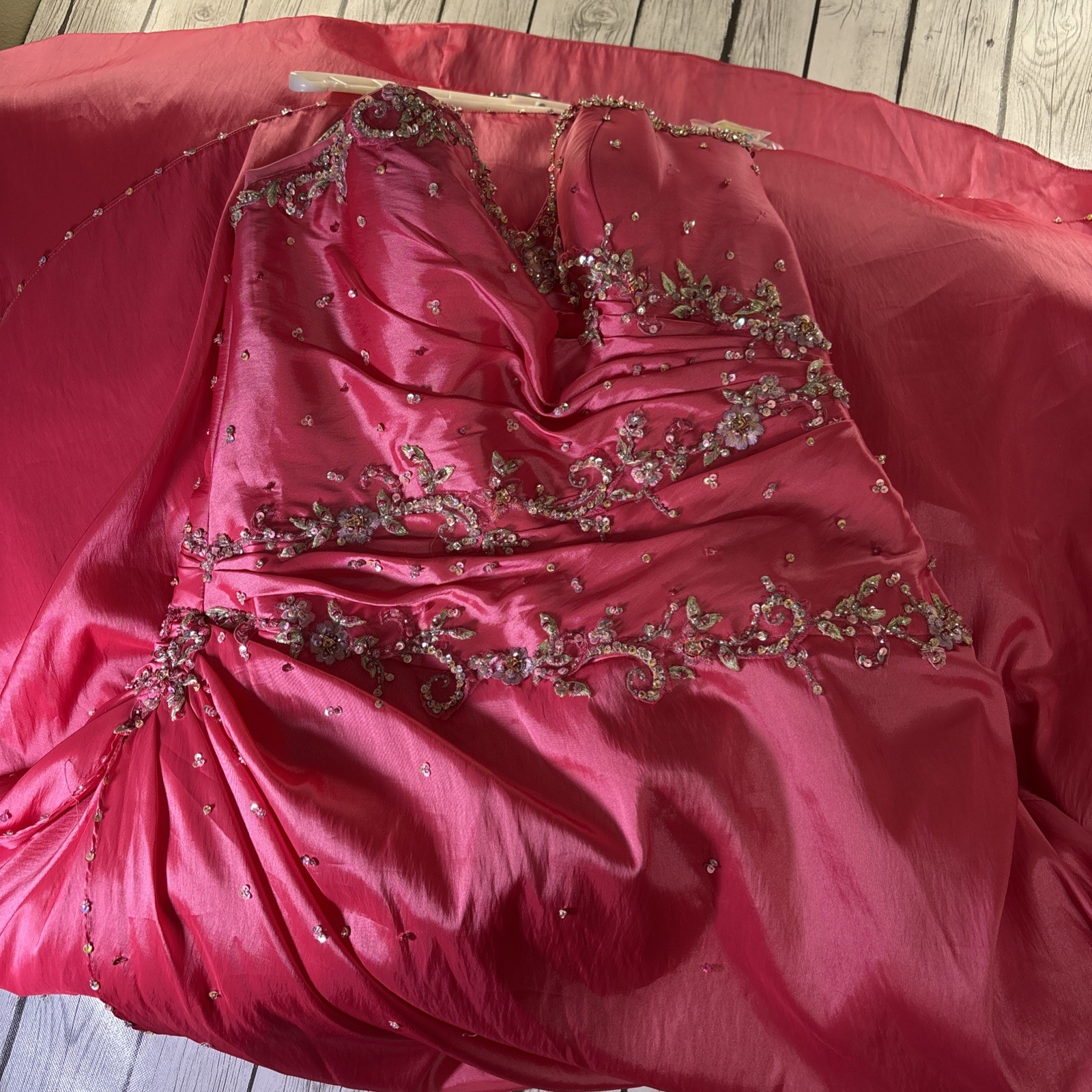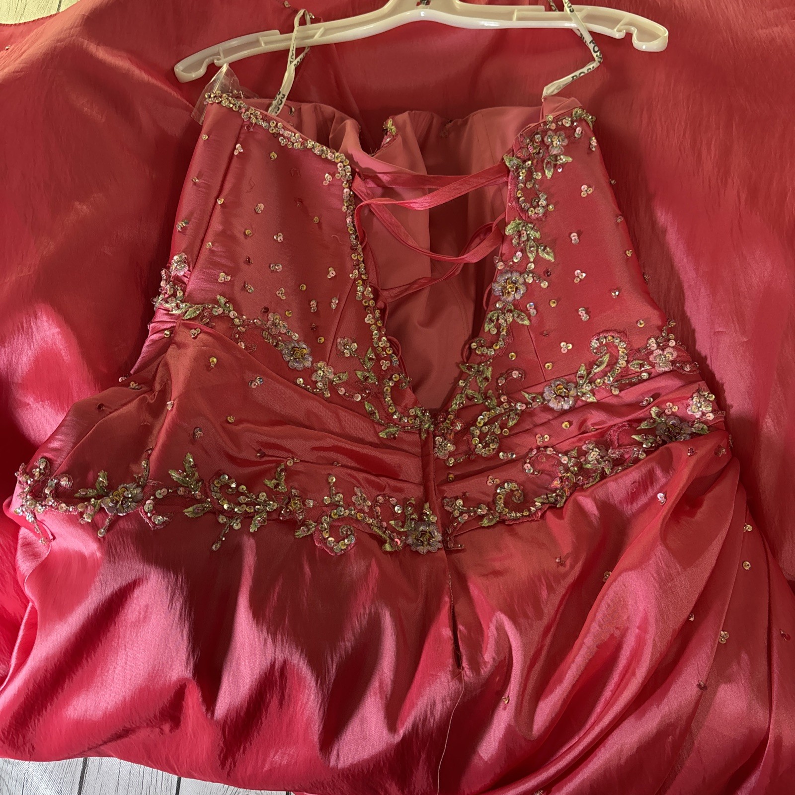как выглядит Posh Precious 18 Strapless Pink Embellished Formal Prom Quincea era Gown Dress. фото