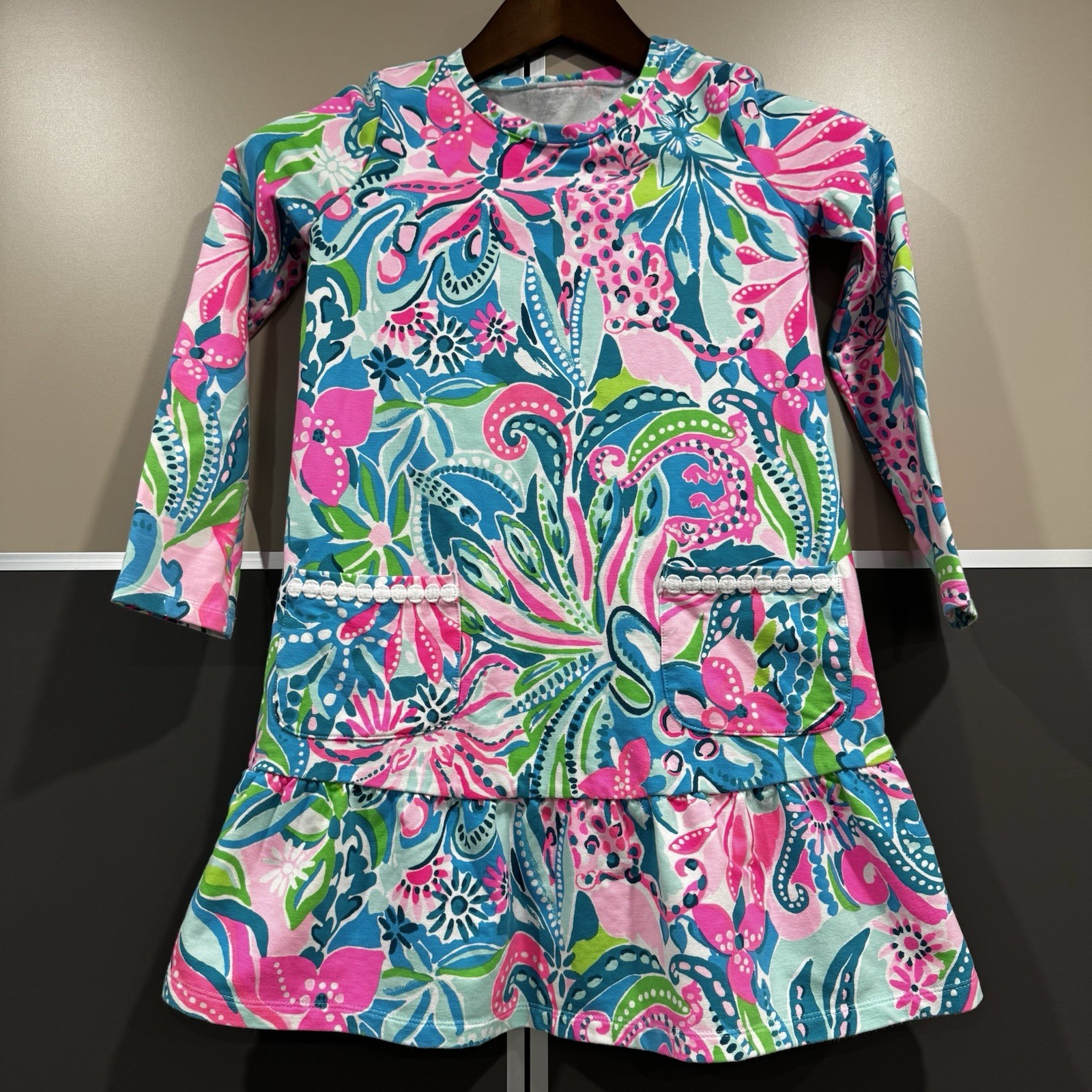 Lilly Pulitzer Vira Long Sleeve Dress Girls Sz 8/10 L Floral Coastal Resort