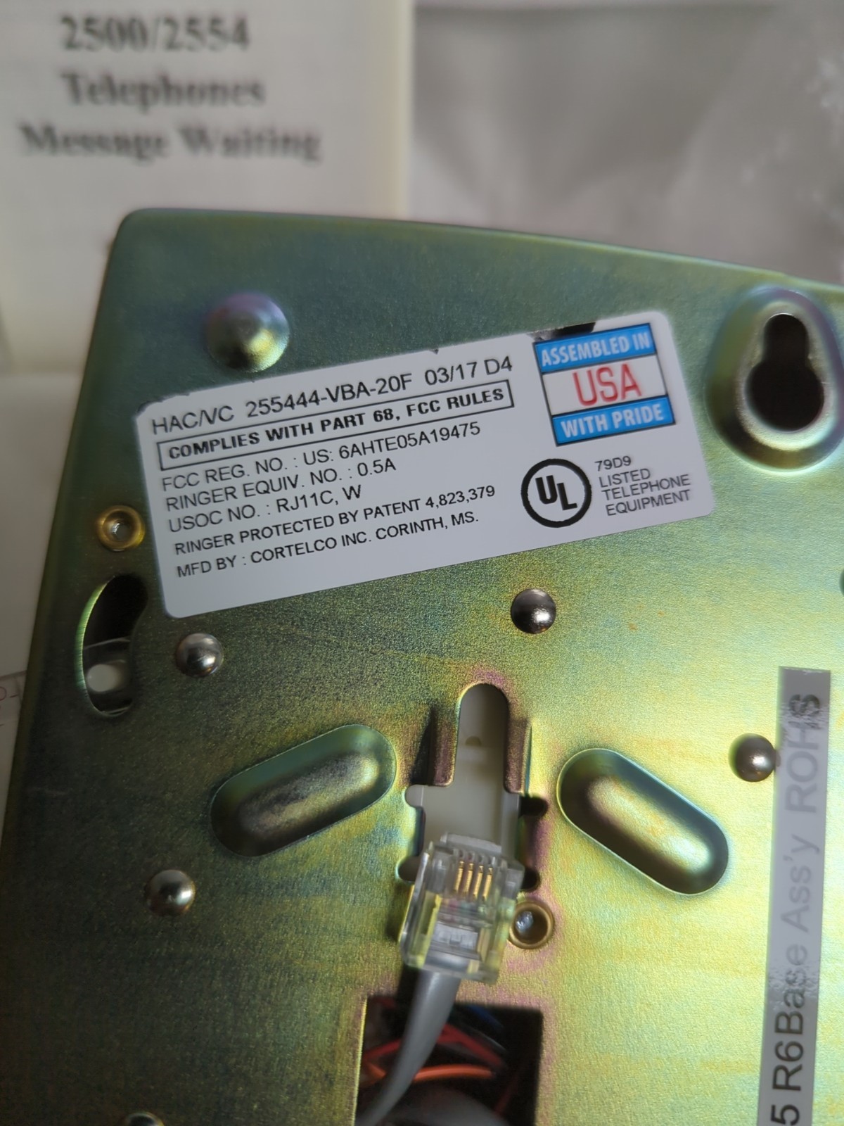CORTELCO,255444-VBA-20F,ASH/WALL PHONE NOS