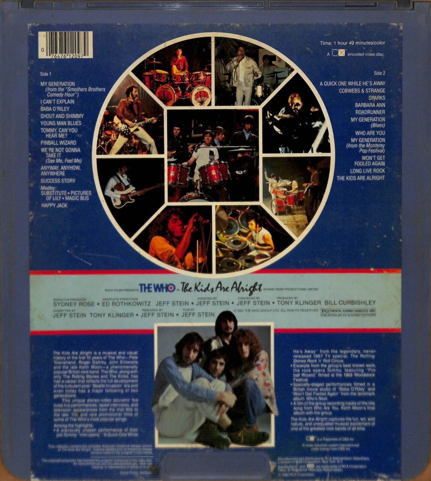 The Who: The Kids Are Alright 1979 CED RCA SelectaVision TESTED WORKING