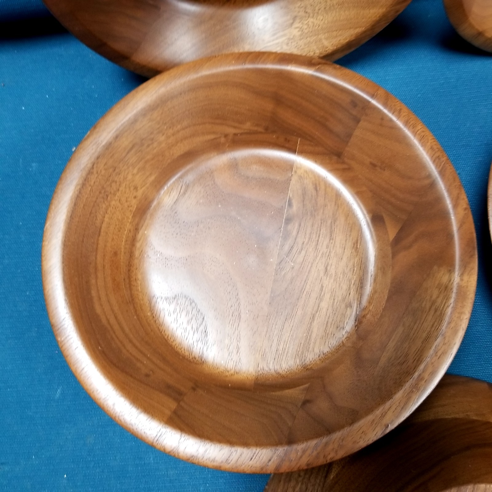 Set of 6 MCM Solid American Walnut Salad Bowls 7 Across