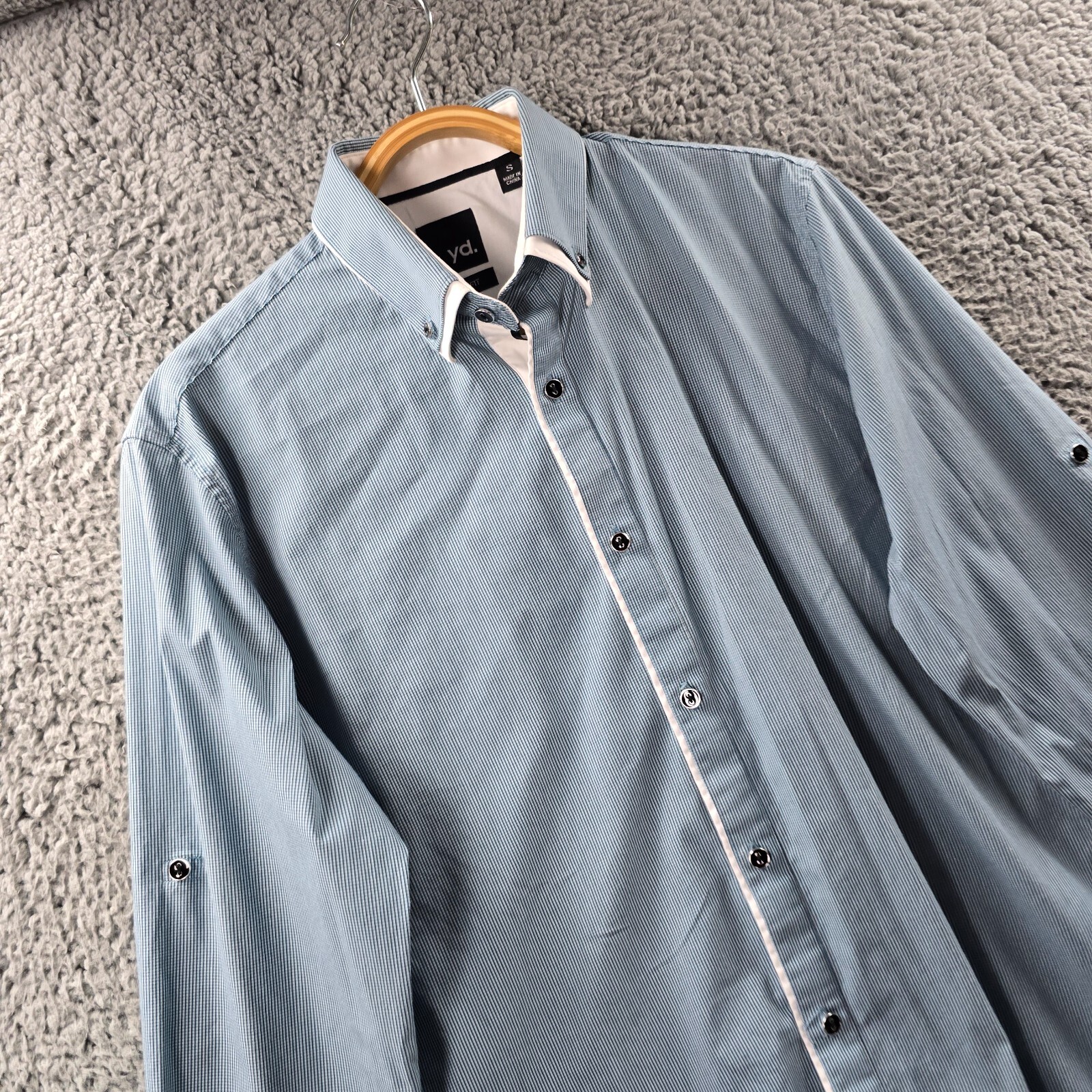 Yd Mens Shirt Size S Green White Check Long Sleeve Collared Button-Up
