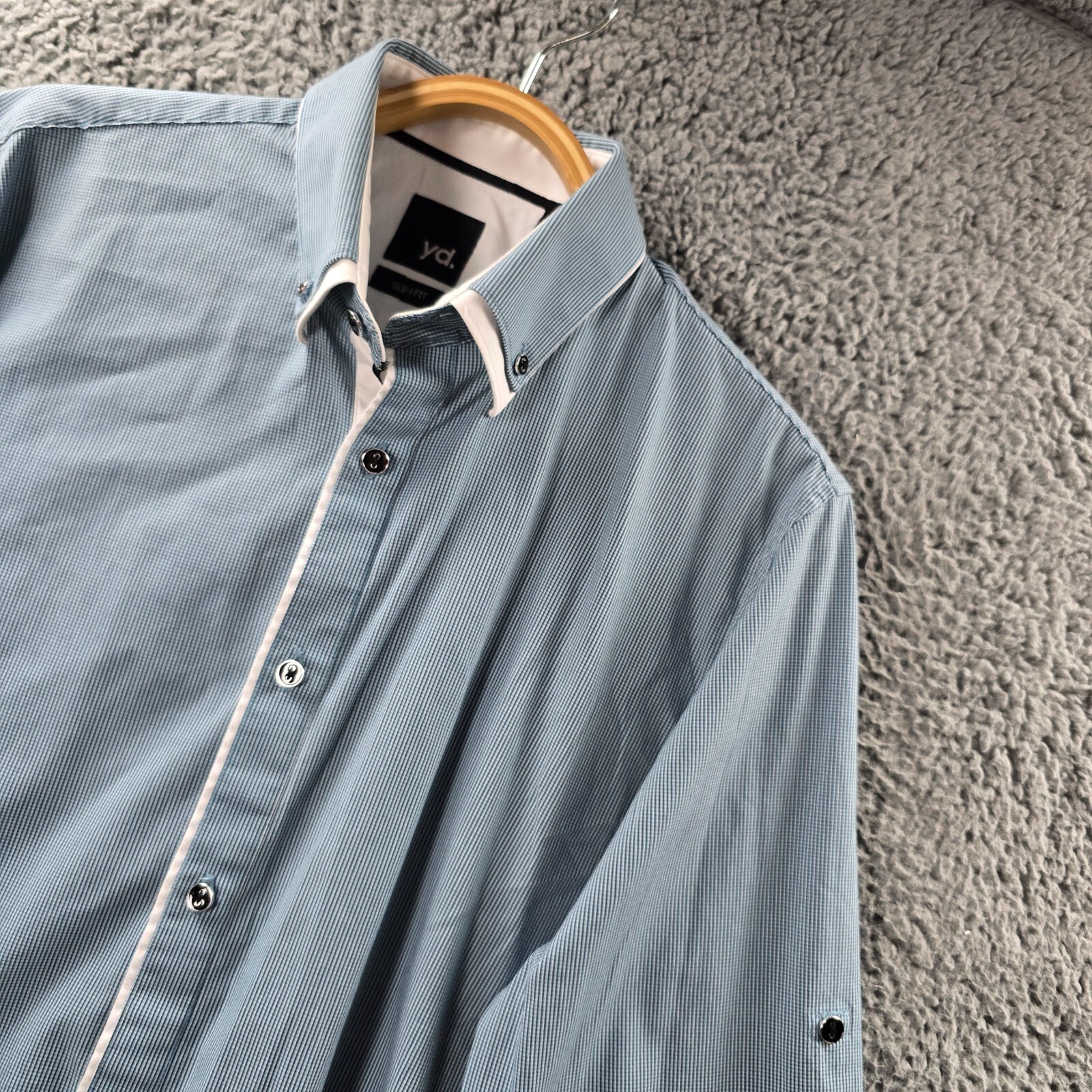 как выглядит Yd Mens Shirt Size S Green White Check Long Sleeve Collared Button-Up фото