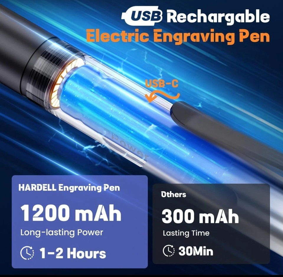 HARDELL Engraving Pen Cordless Engraving Tool w 37000RPM USB Rechargeable New