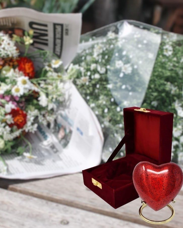 Red Heart Cremation Urn Keepsake Velvet Box Memorial Ashes Holder