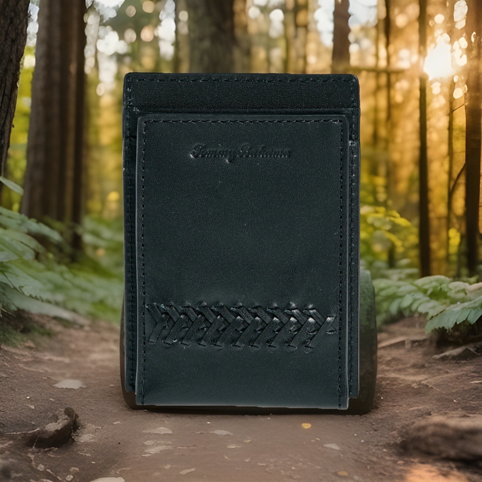 Tommy Bahama Men Lace Details Leather Bifold Wallet Black w/Gift Box MSRP 75.00