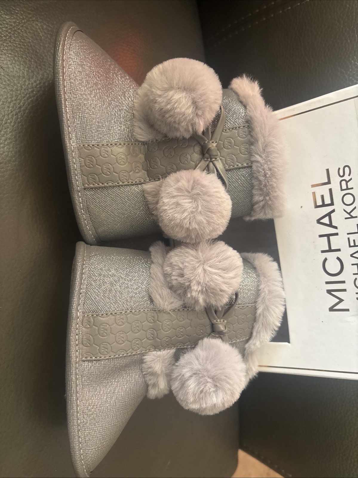как выглядит Michael Kors NEW Baby Girls Fur Trim Glitter Grey Metallic Booties Sz 4 9-12M фото