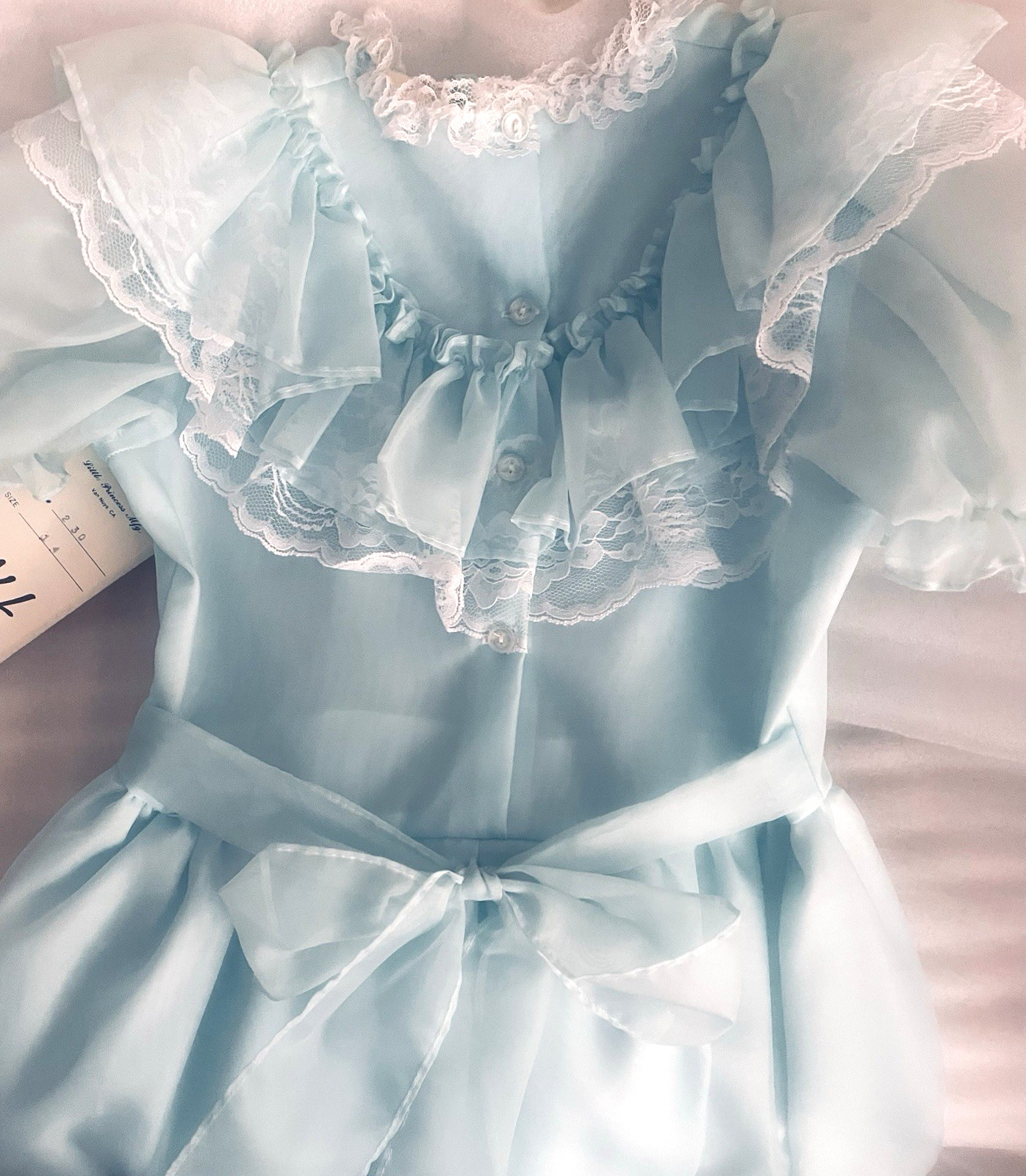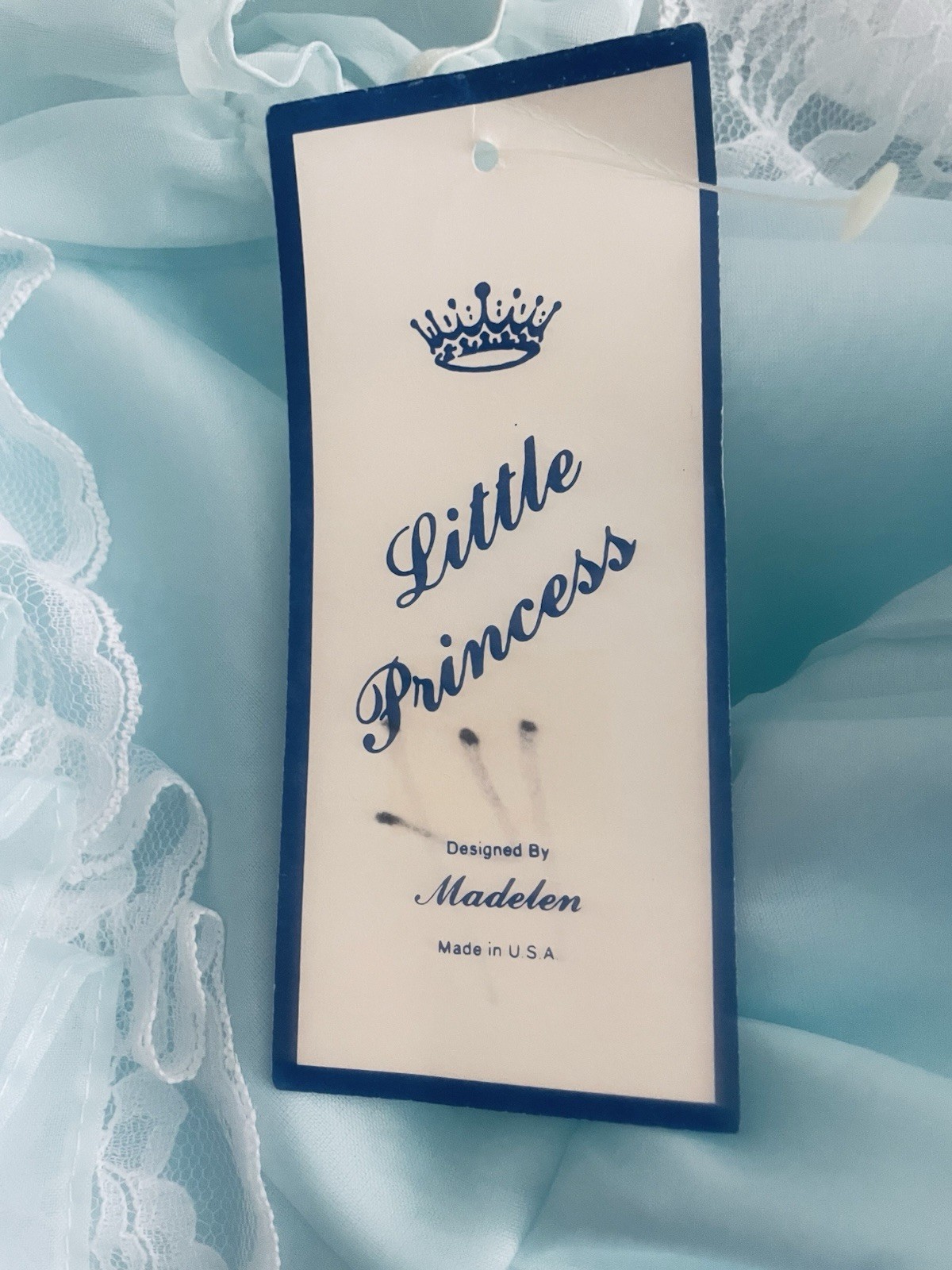 как выглядит Vtg NWT 80s Lil Princess Dress w Lining Size 14 Overlay Ruffles Lace Teal Blue фото