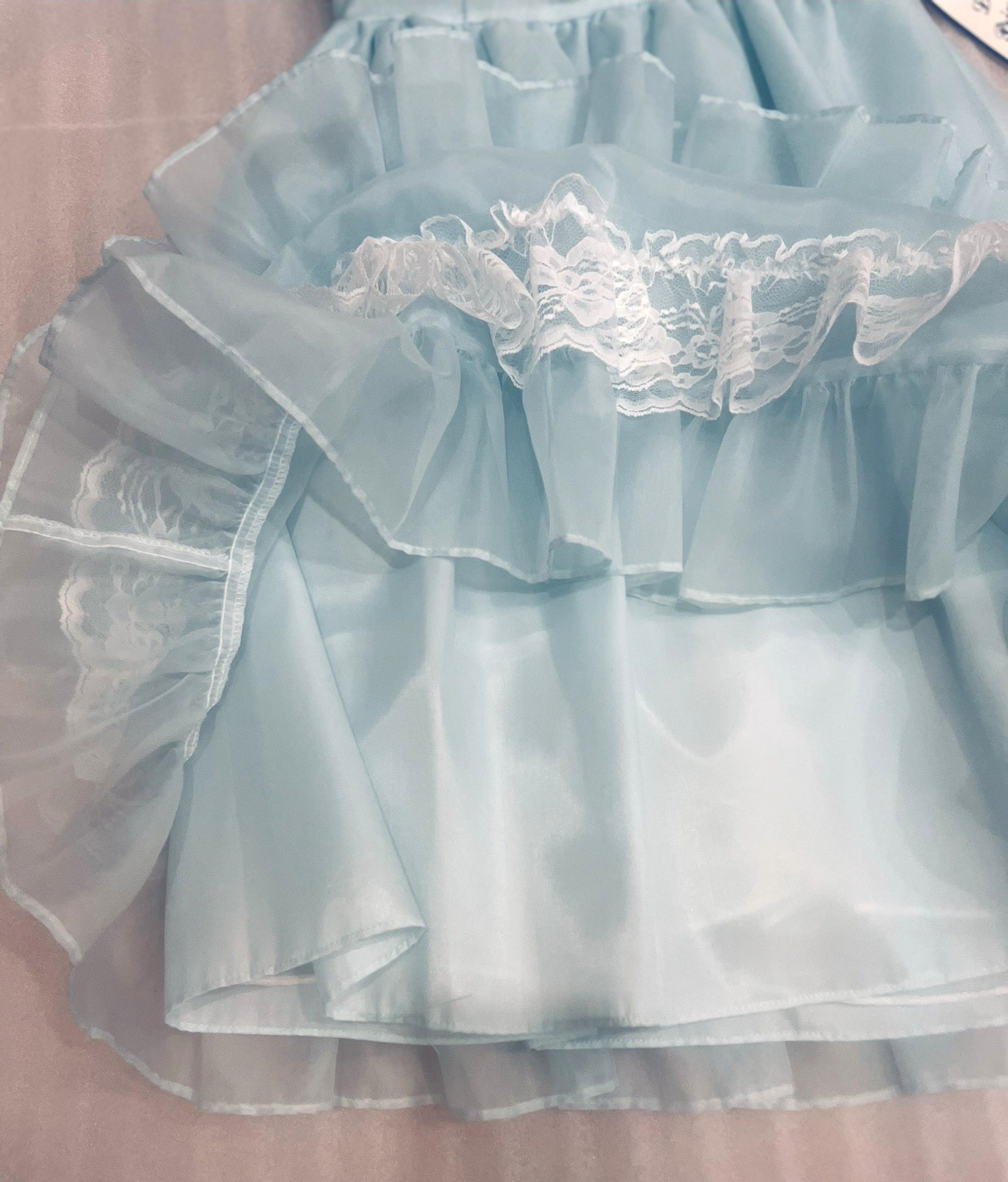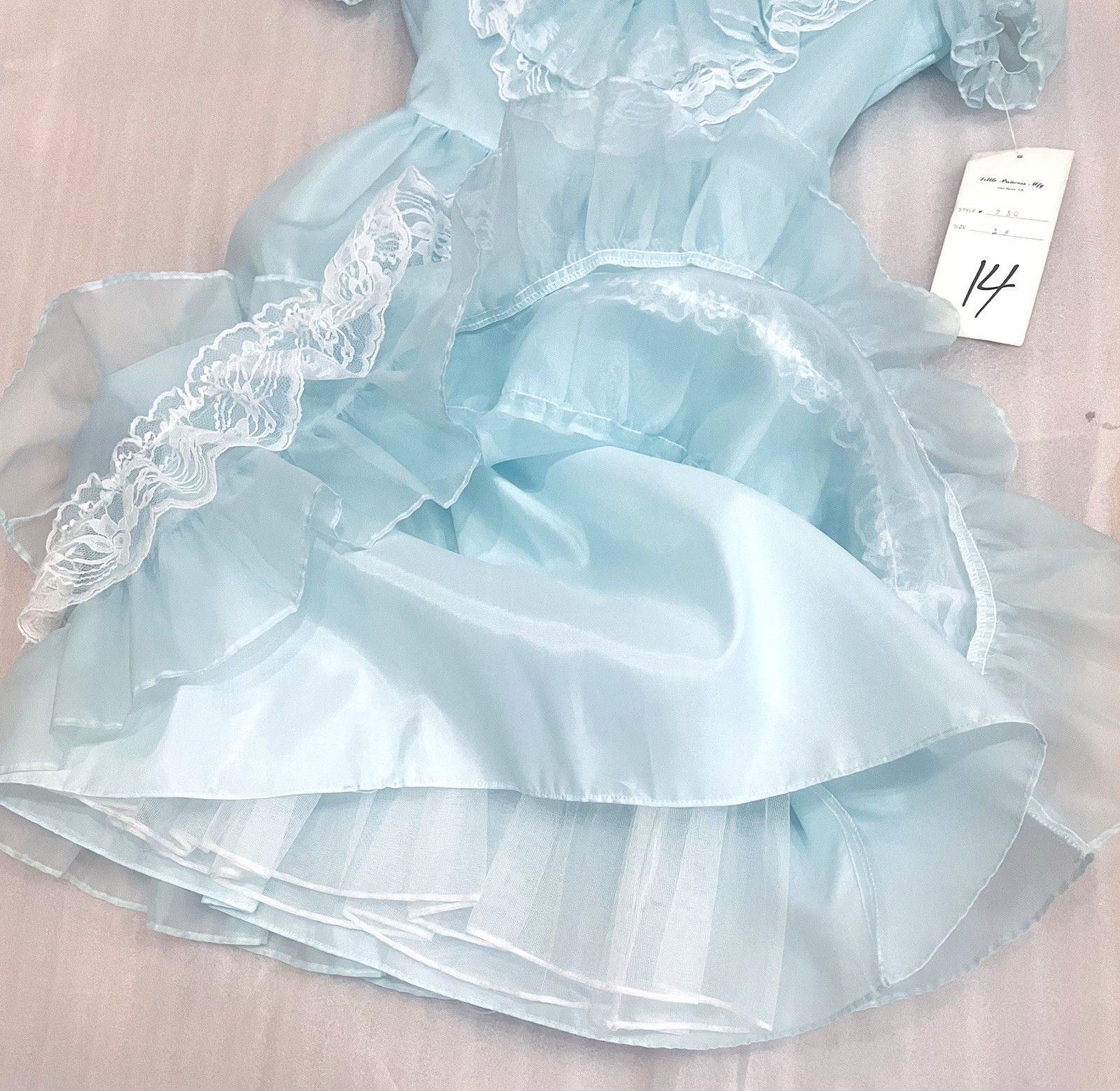 Vtg NWT 80s Lil Princess Dress w Lining Size 14 Overlay Ruffles Lace Teal Blue