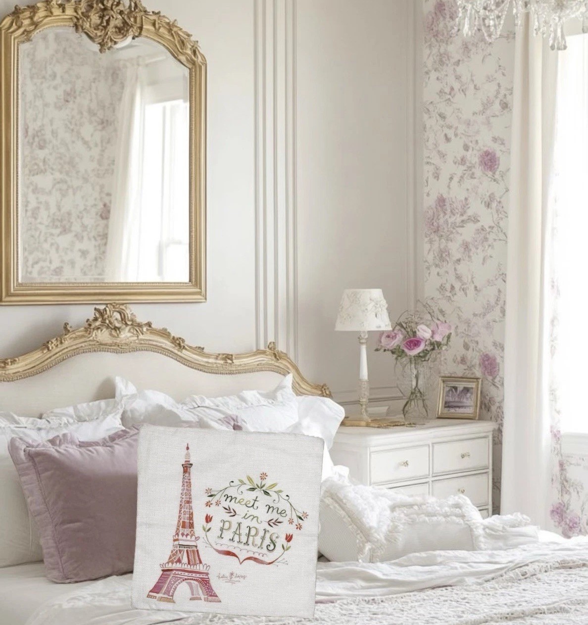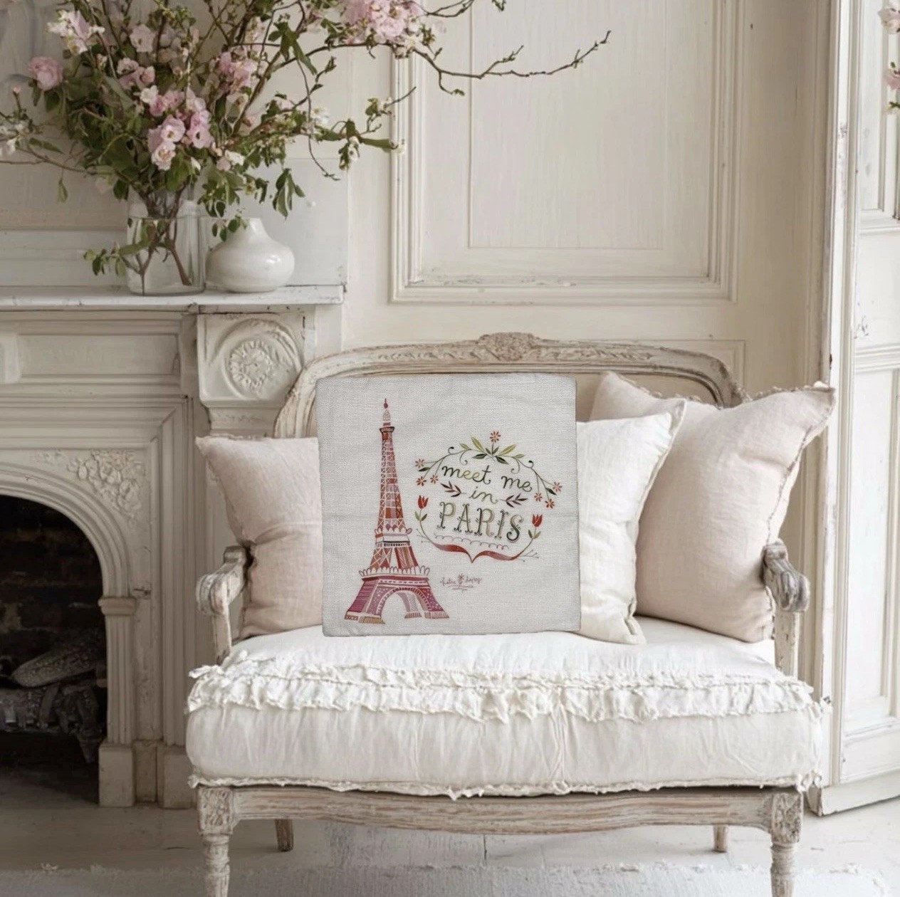 Paris Eiffel Tower Throw Pillow Cover Home Decor Accent Pink Floral Gift 17