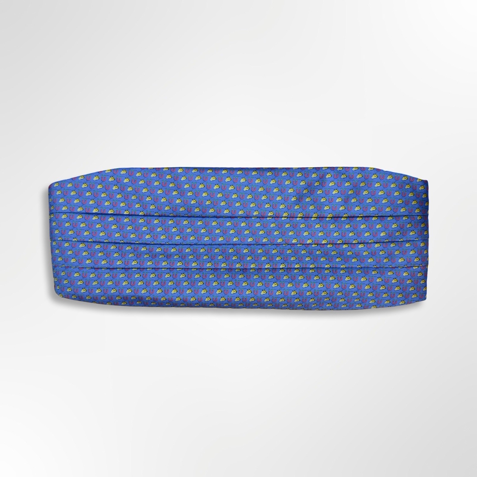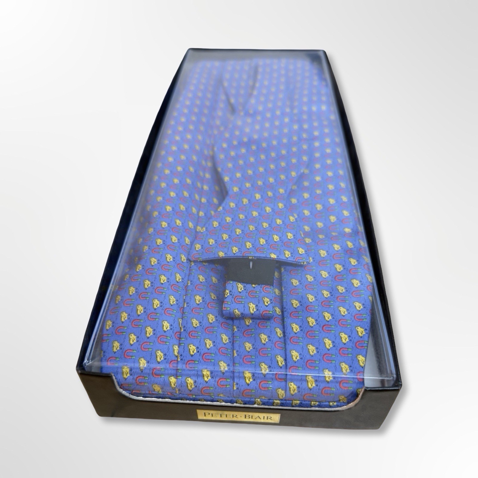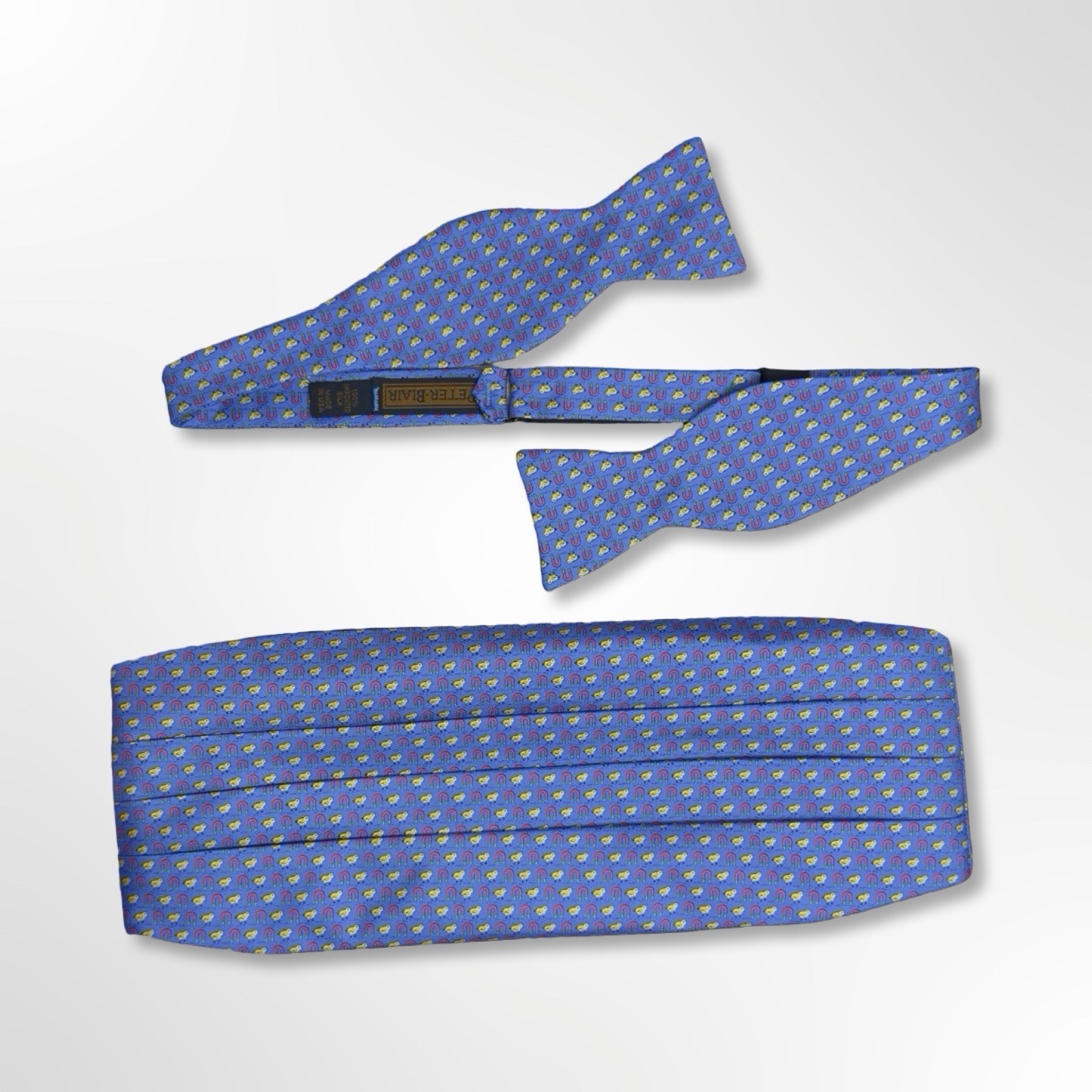 Peter Blair Bachelor Bow Tie and Cummerbund Set Blue Chick Magnet 100 Silk New