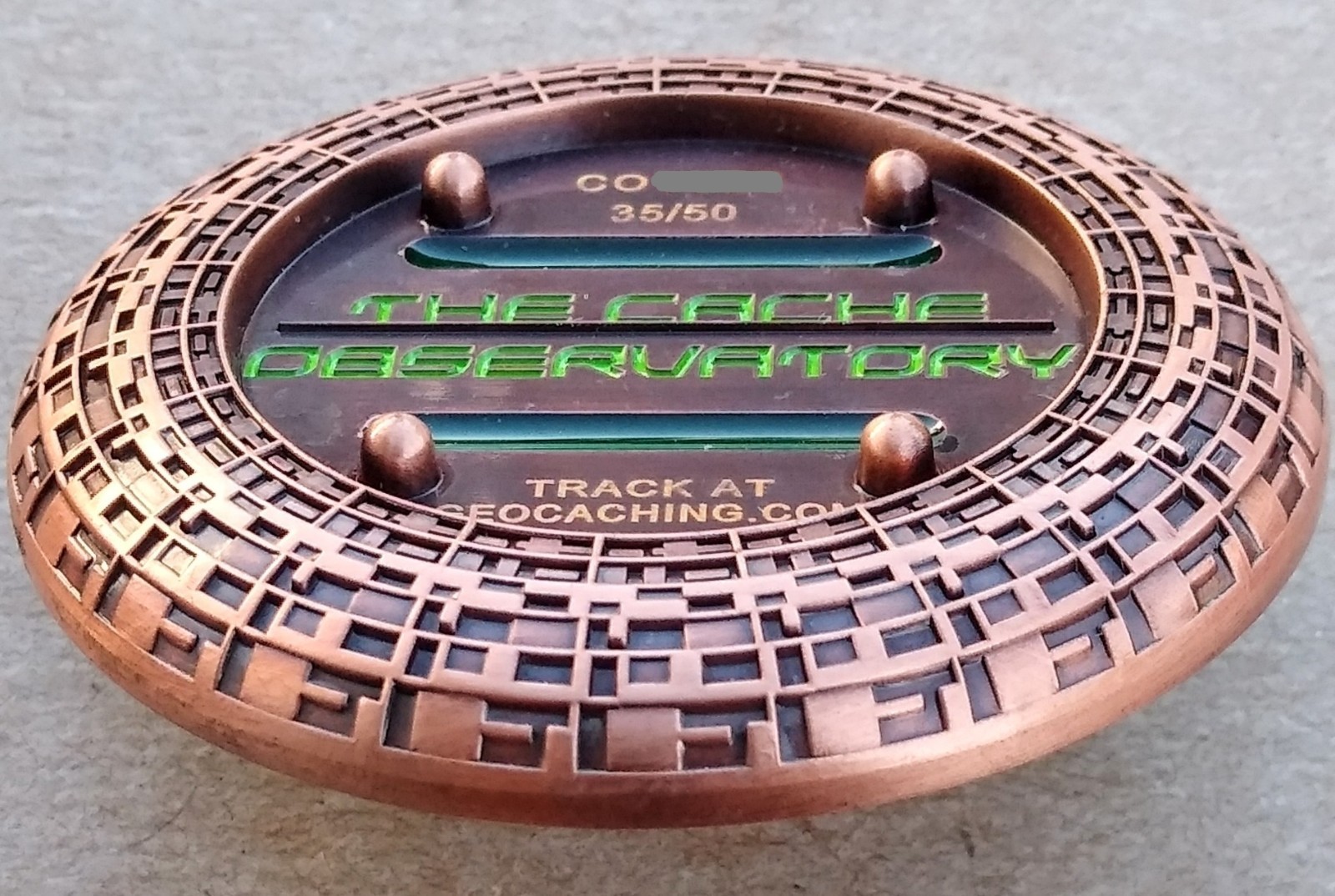 Cache Observatory 3D Spinner Geocoin - LE50 - Activated Adoptable - TB5YDT6