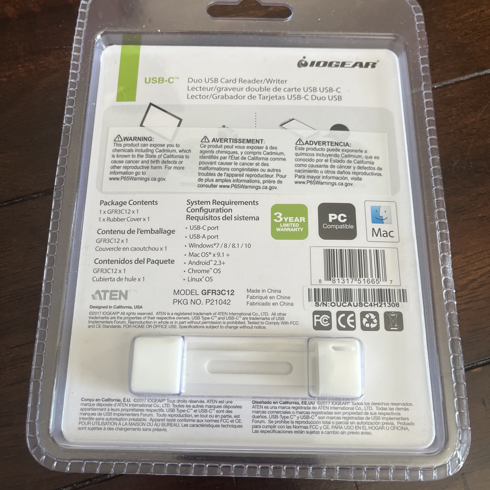 Iogear GFR3C12 USB-C Duo Card Reader /writer