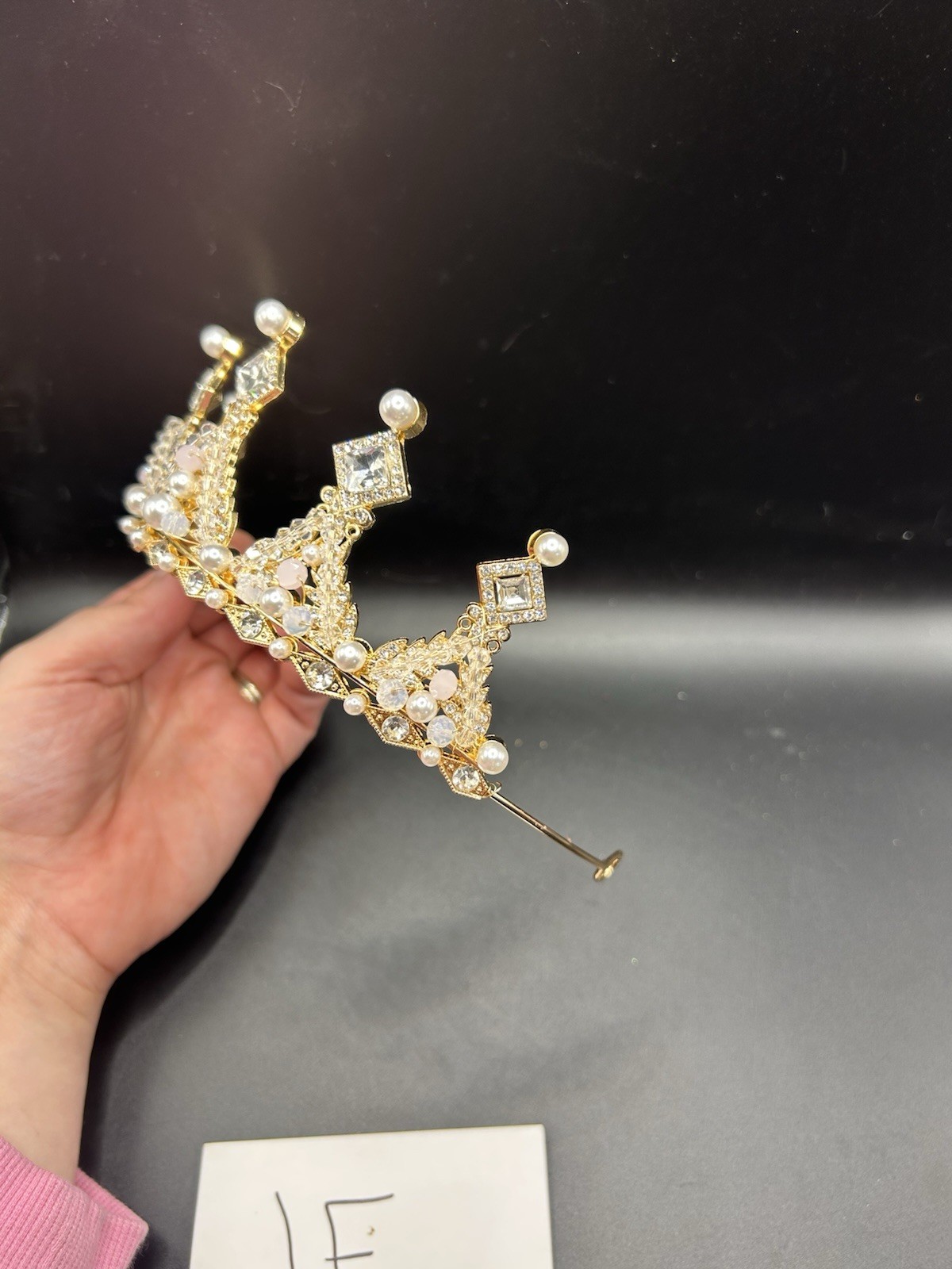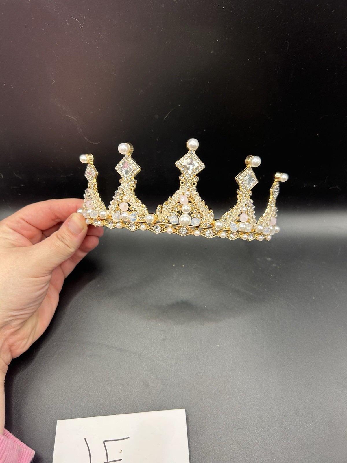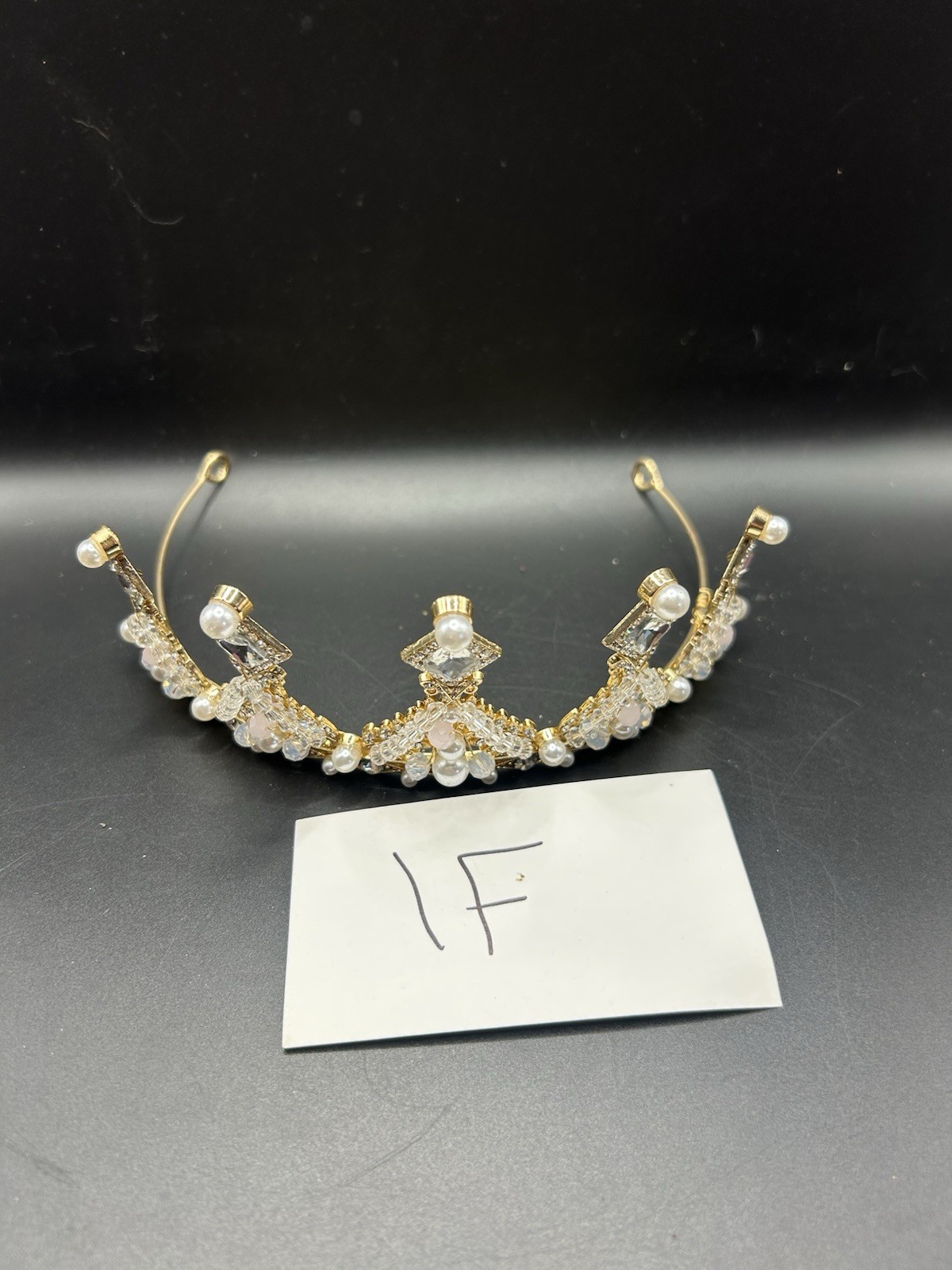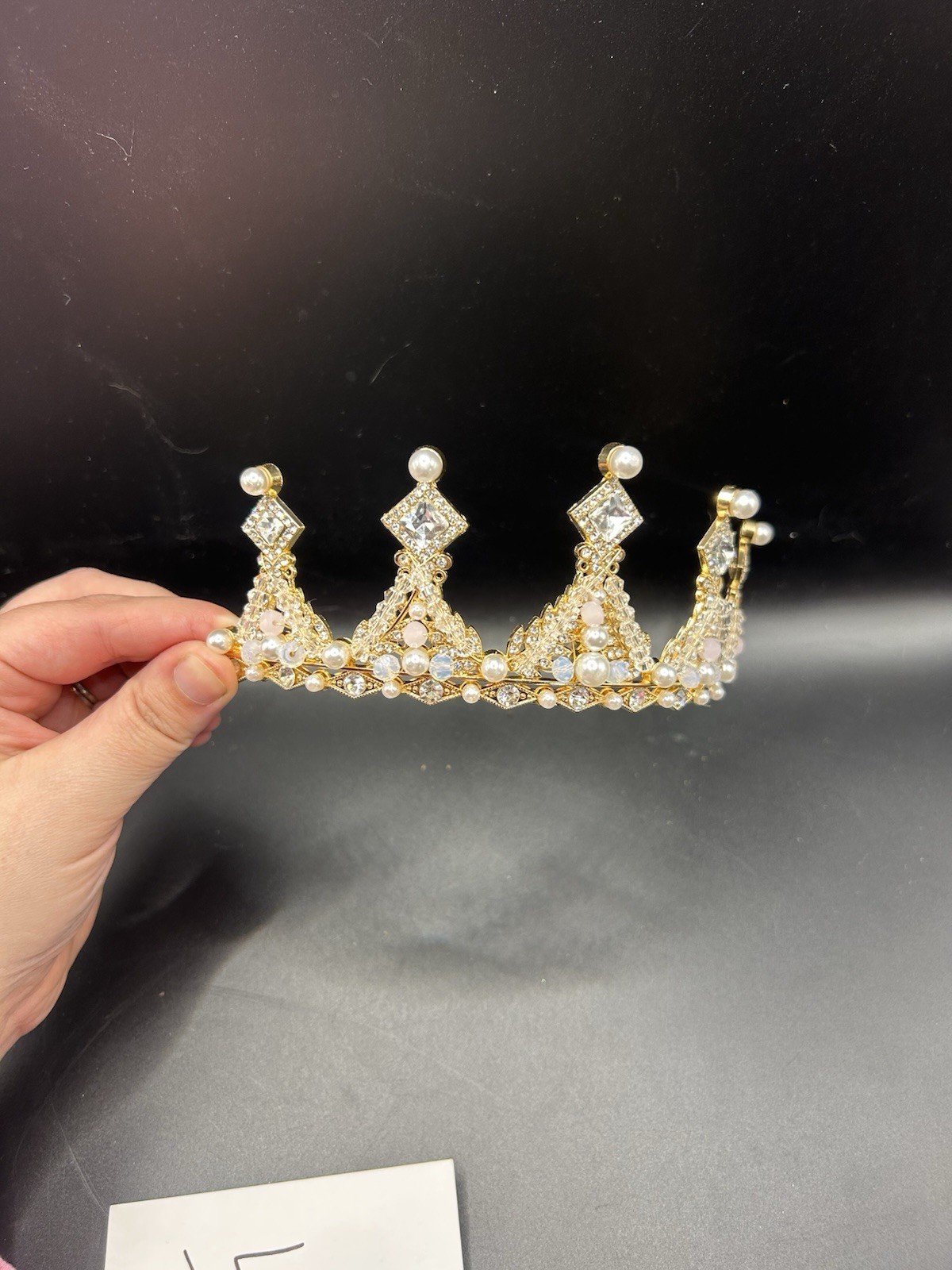 как выглядит Beaded Tiara, Clear Gold Tone Wedding Tiara, Jewelry, Vintage Look Crown 1F фото